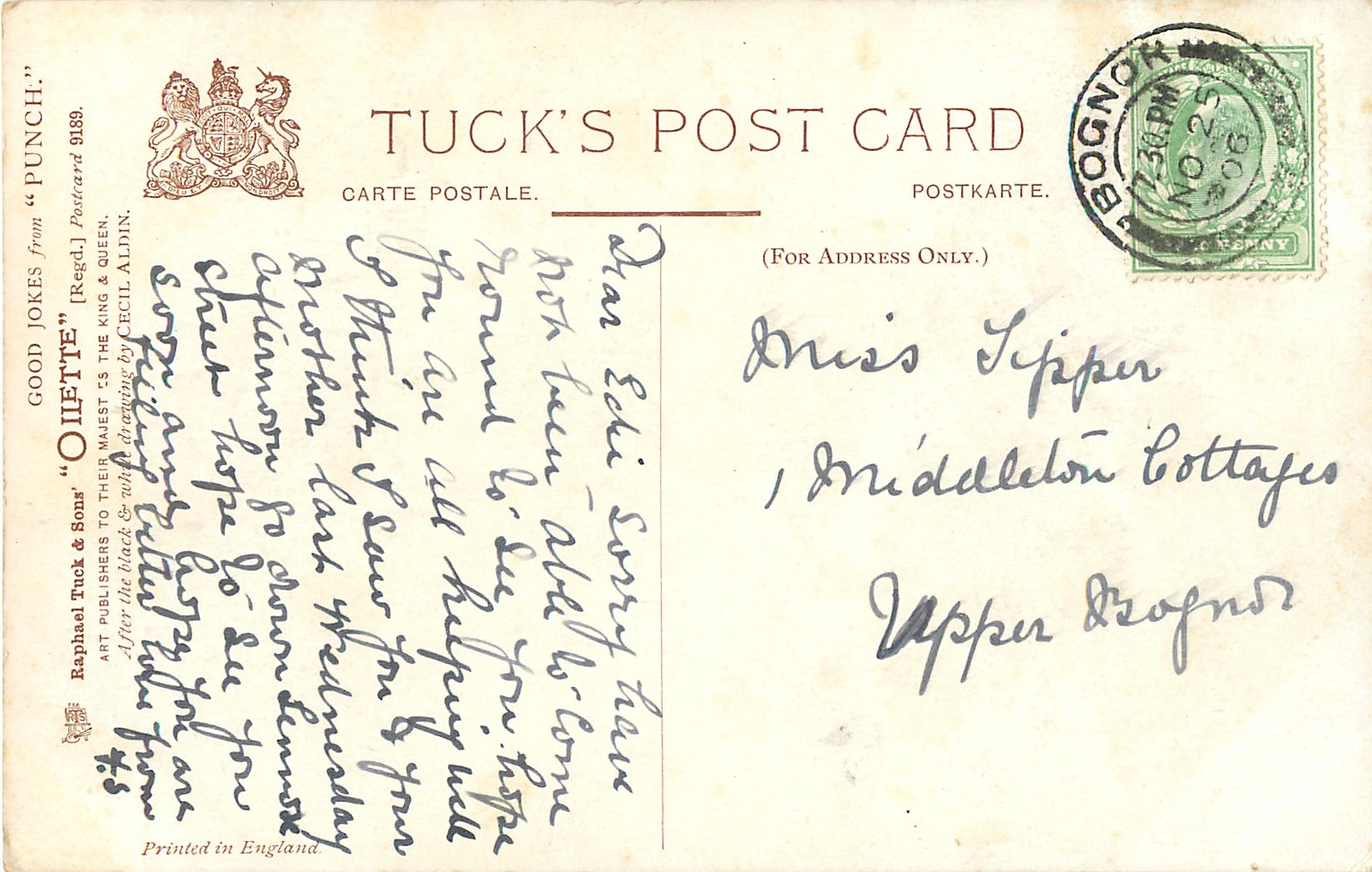 OILETTE, PRINTED IN ENGLAND, listed in 1908/1909 & 1911/1912 Postcard Catalogue
