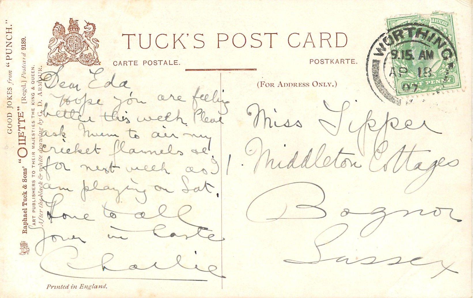 OILETTE, PRINTED IN ENGLAND, listed in 1908/1909 & 1911/1912 Postcard Catalogue