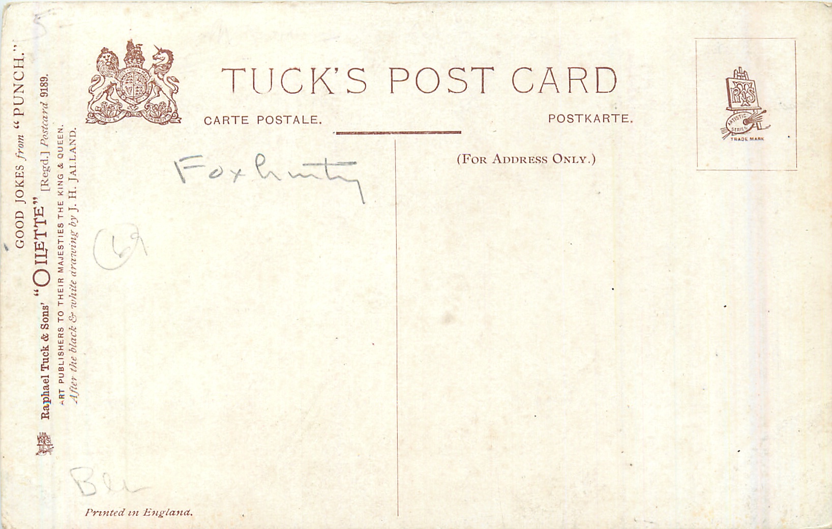 OILETTE, PRINTED IN ENGLAND, listed in 1908/1909 & 1911/1912 Postcard Catalogue