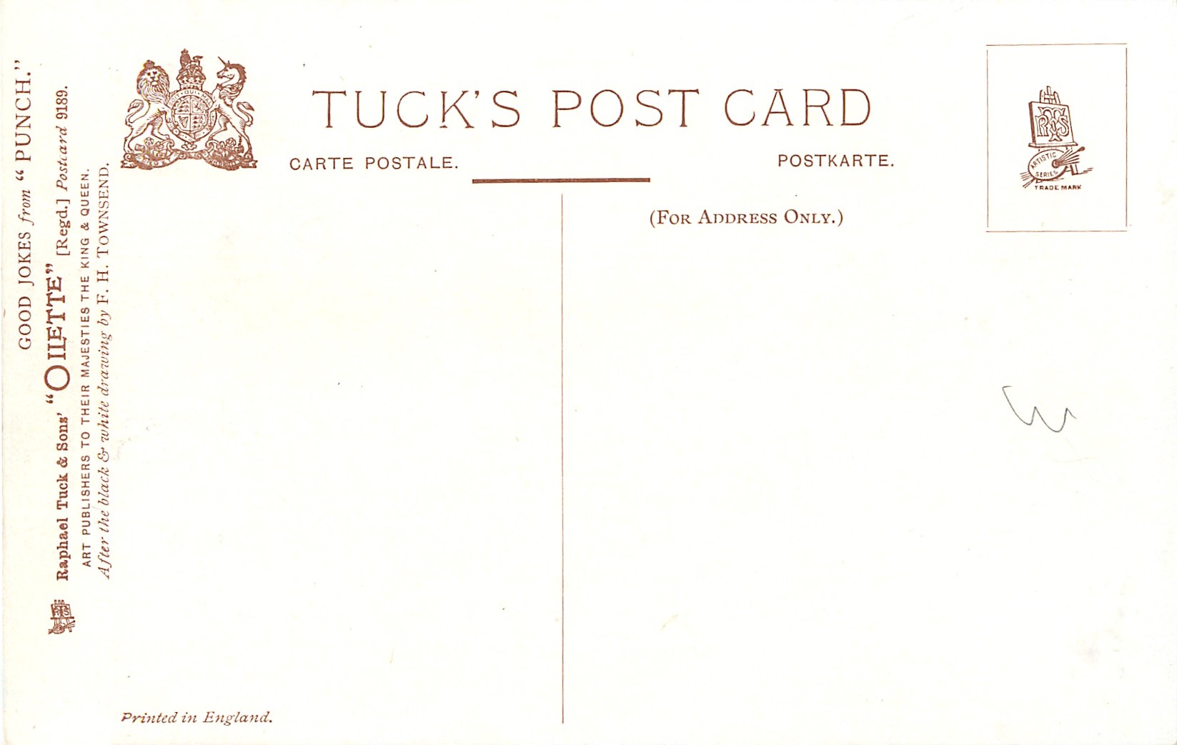 OILETTE, PRINTED IN ENGLAND, listed in 1908/1909 & 1911/1912 Postcard Catalogue