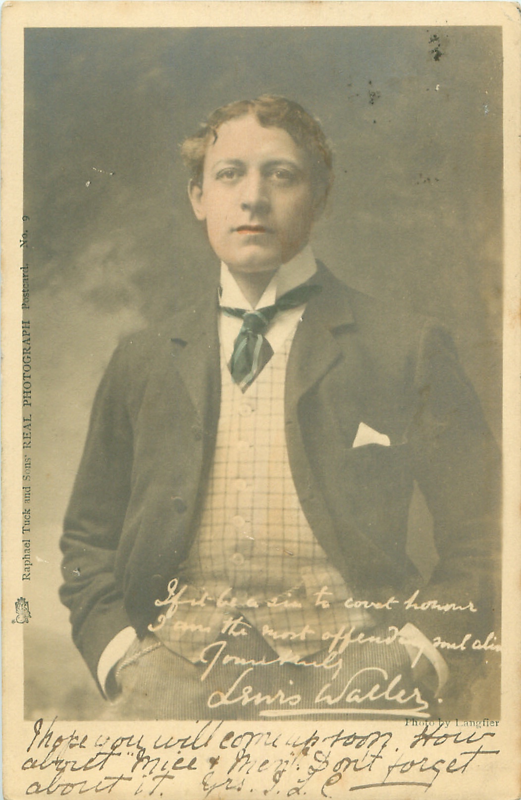 comes hand-coloured, with quote, "IF IT BE A SIN TO COVET HONOUR, I AM THE MOST OFFENDING SOUL ALIVE." PHOTO LANGFIER Lewis Waller (1860-1915) in "An Ideal Husband" Haymarket Th. 1895 (124)