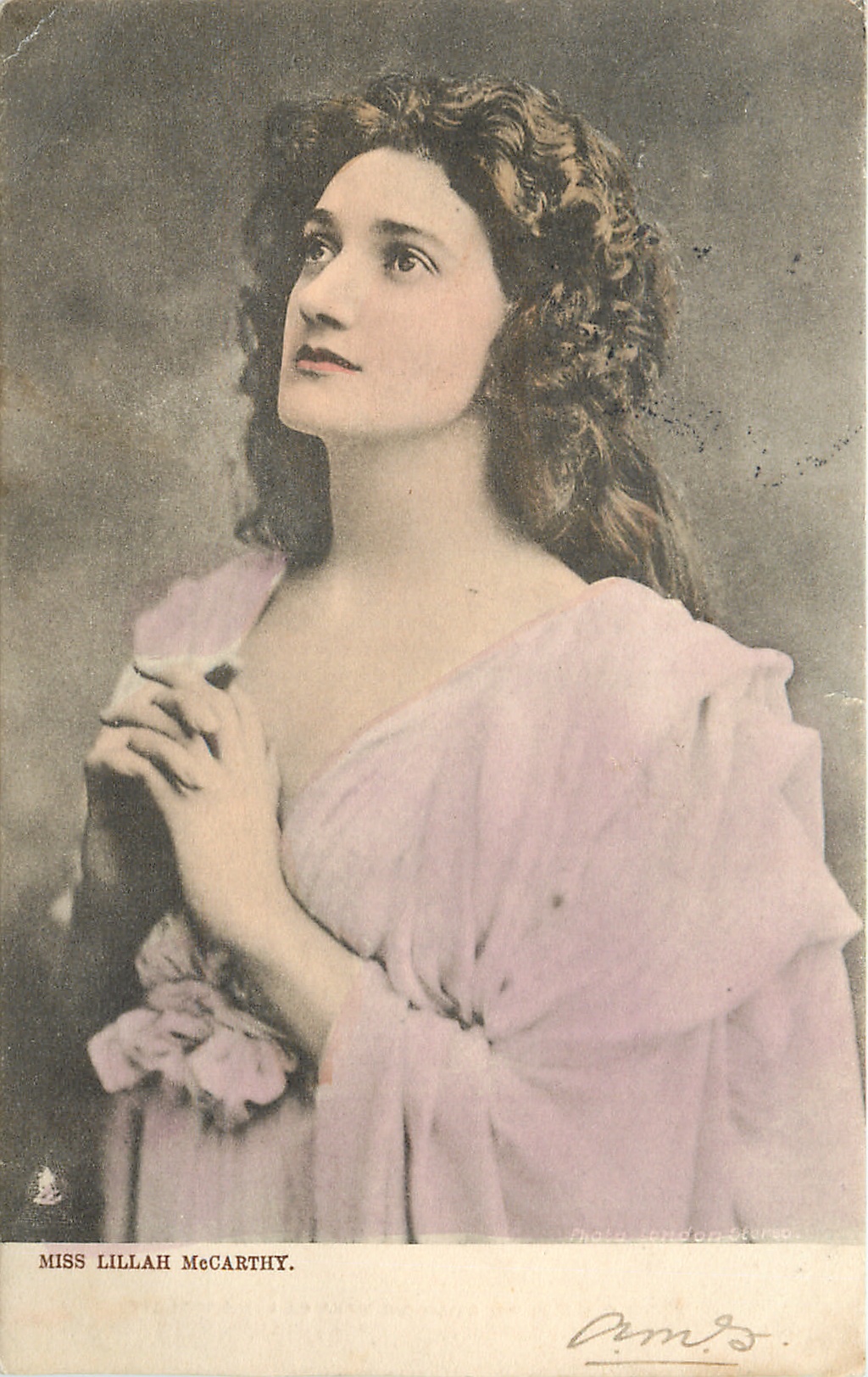 Lillah McCarthy (1875-1960) Actress and Theatre Manager. was in "Sign of the Cross", in "Hamlet" ,in Julius Caesar 1904; in "Othello" ; went to So. Africa & Australia with Wilson Barrett.