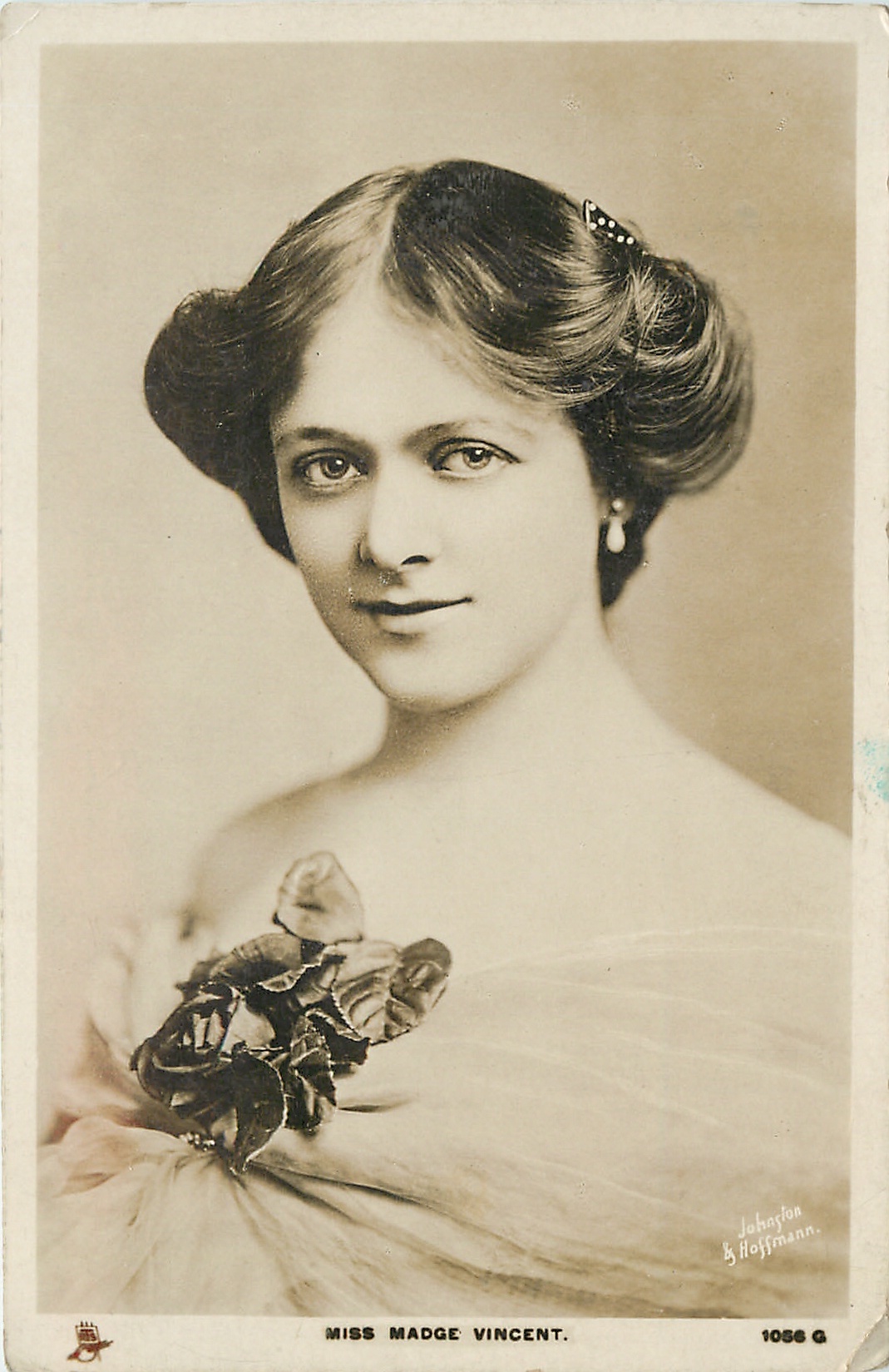 Madge Vincent (1884 Norfolk, Eng- ) was a Chorister for D'Oyly Carte from 1898- to 1900; was Shuey Pin Sing in "San Toy " in Daly's Th. London 1900 (show was 1899-1900) (768)
