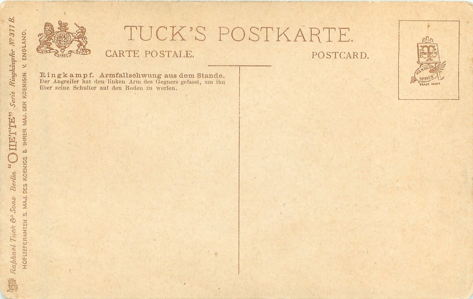 RAPHAEL TUCK & SONS BERLIN, OILETTE, same image, English back 4500 WRESTLING SER. II