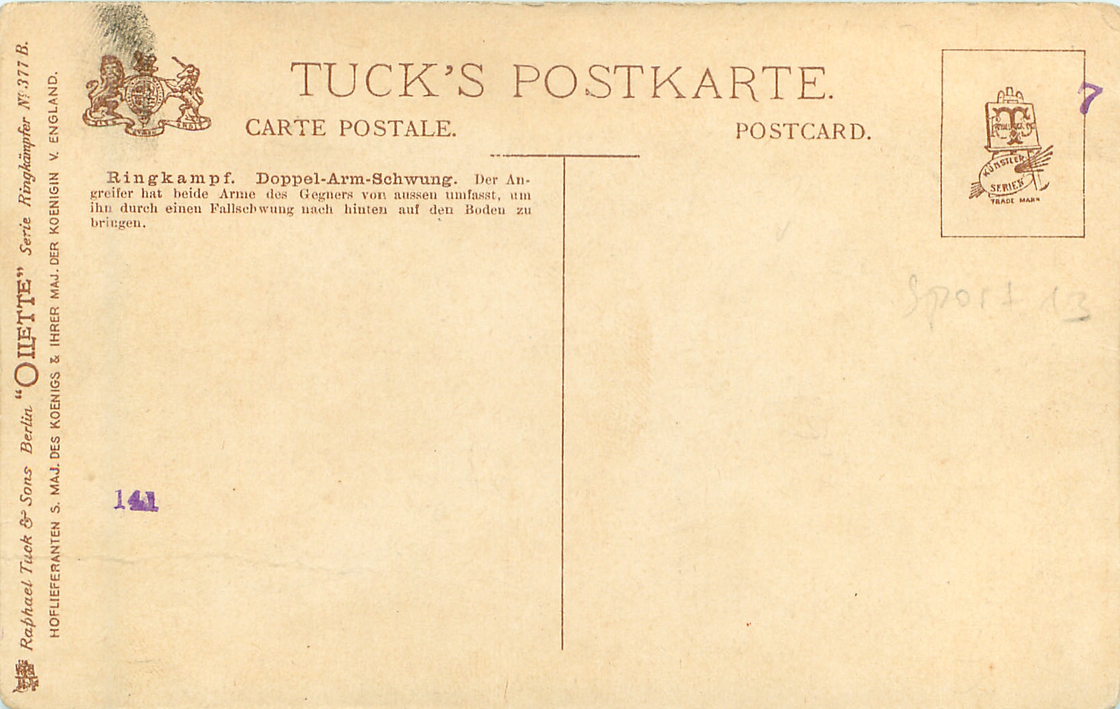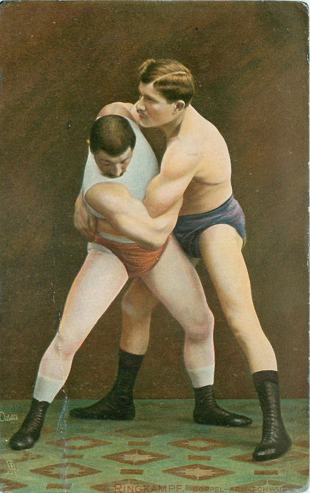 RAPHAEL TUCK & SONS BERLIN, OILETTE, same image, English back 4500 WRESTLING SER. II