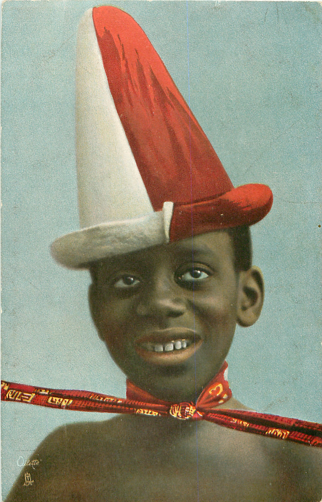 same image English back FULL DRESS IN DAHOMEY OILETTE 6950, German back NEGERKOPFE 393B, Suffix P