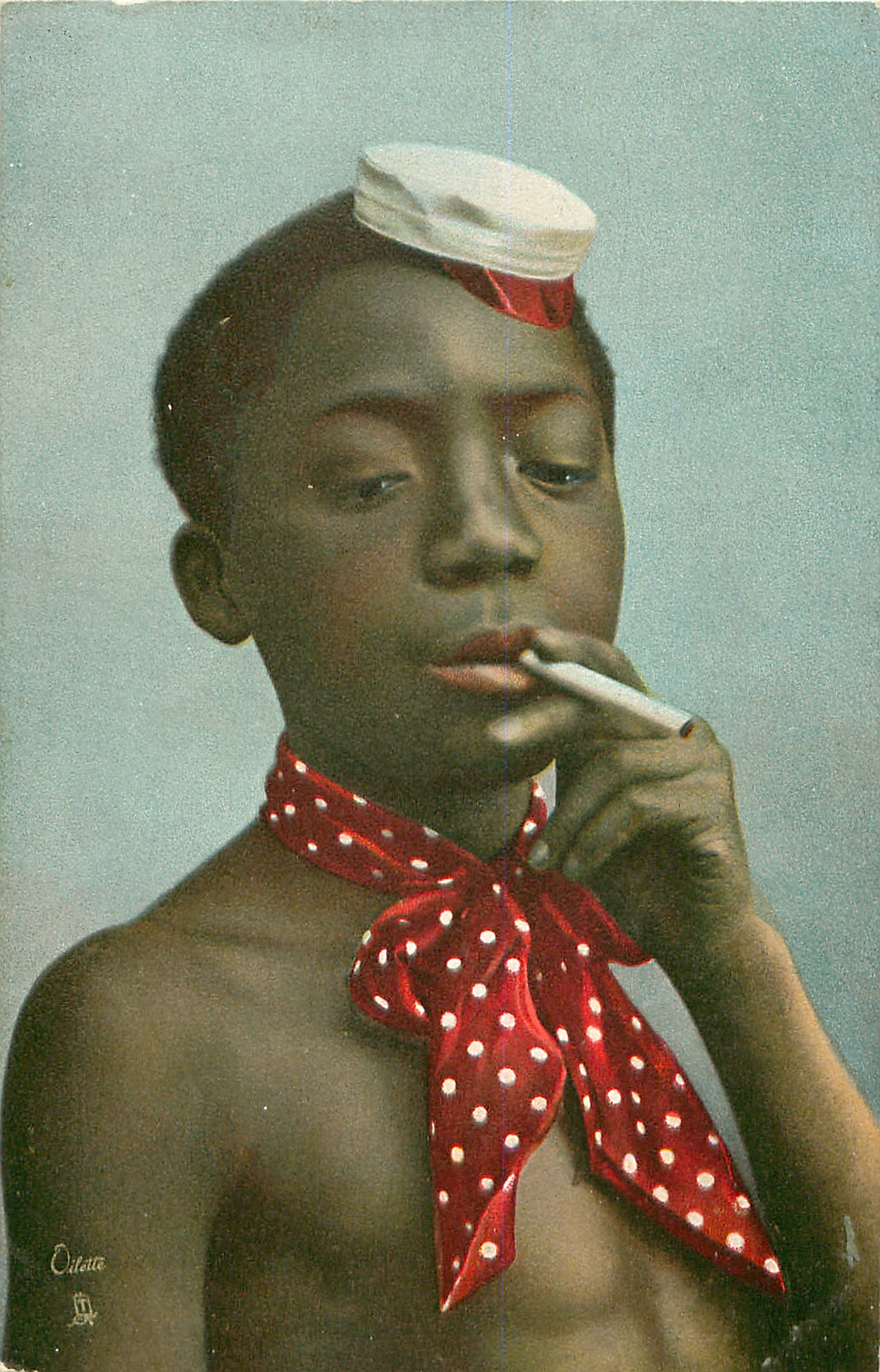 same image English back FULL DRESS IN DAHOMEY OILETTE 6950, German back NEGERKOPFE 393B, Suffix P