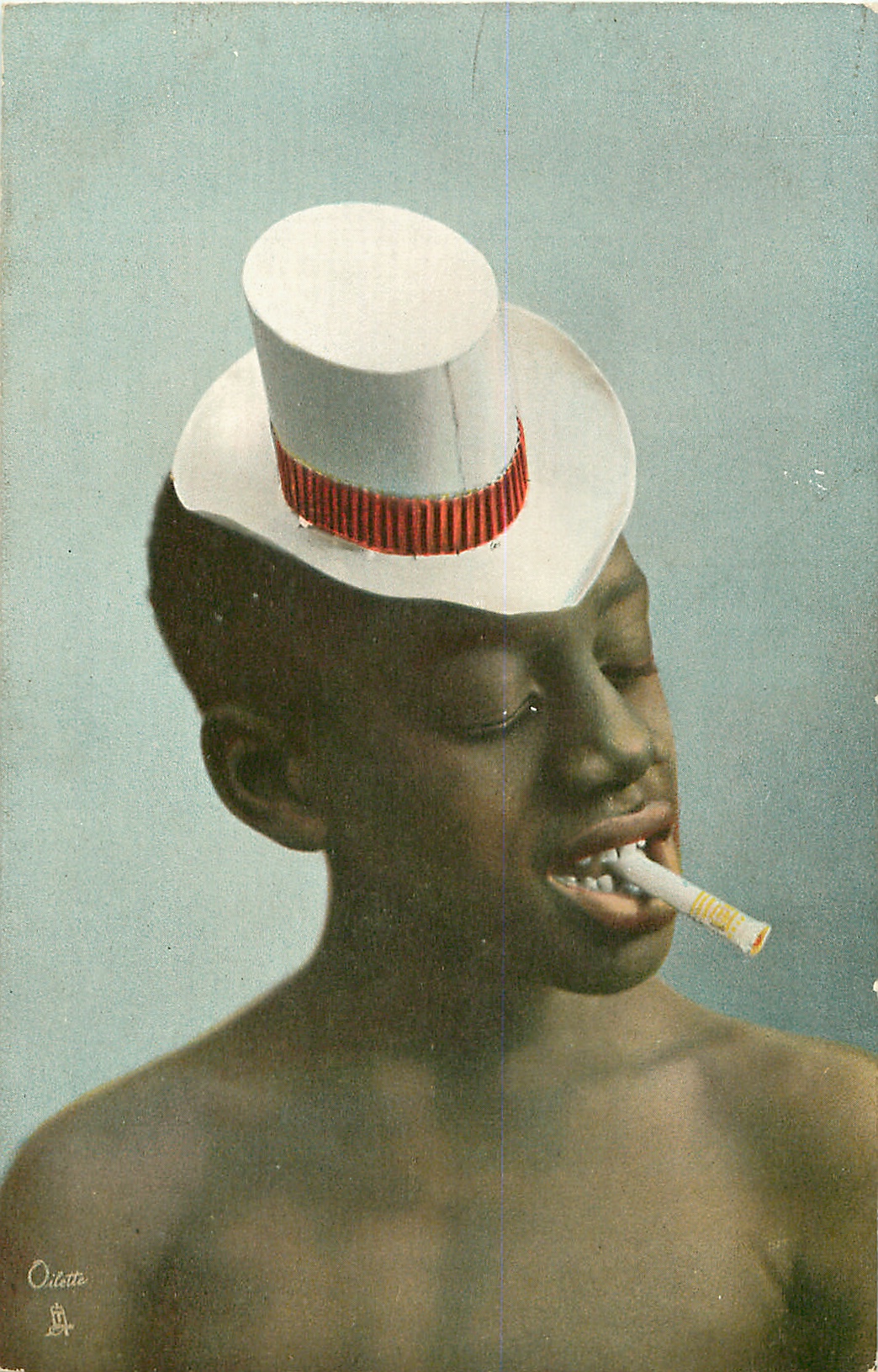 same image English back FULL DRESS IN DAHOMEY OILETTE 6950, German back NEGERKOPFE 393B, Suffix P