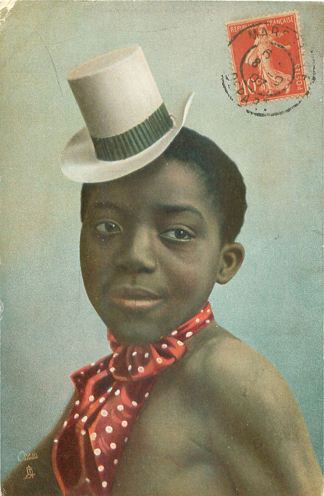 same image English back FULL DRESS IN DAHOMEY OILETTE 6950, German back NEGERKOPFE 393B, Suffix P