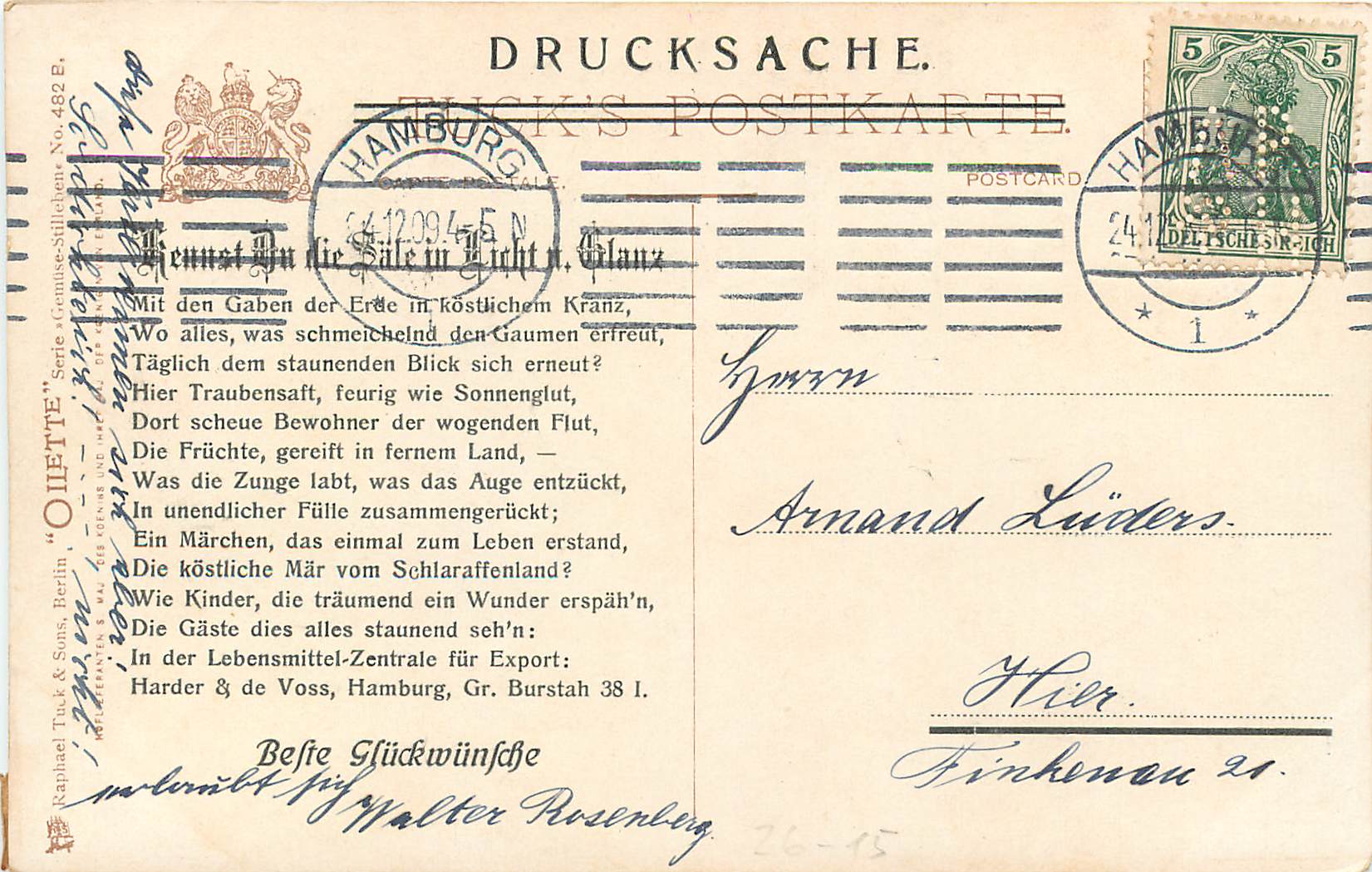 comed with HARDER & DE VOSS LEBENSMITTEL in white on red at lower tight front & half card in black on back in German see scan