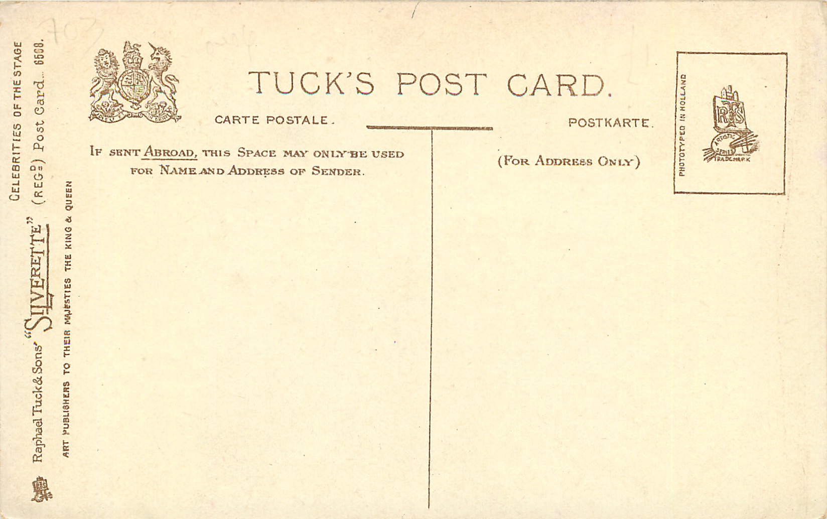 SILVERETTE, PHOTO HOLLAND or PHOTOTYPED IN HOLLAND (in stamp box), shades of grey, 2 backs