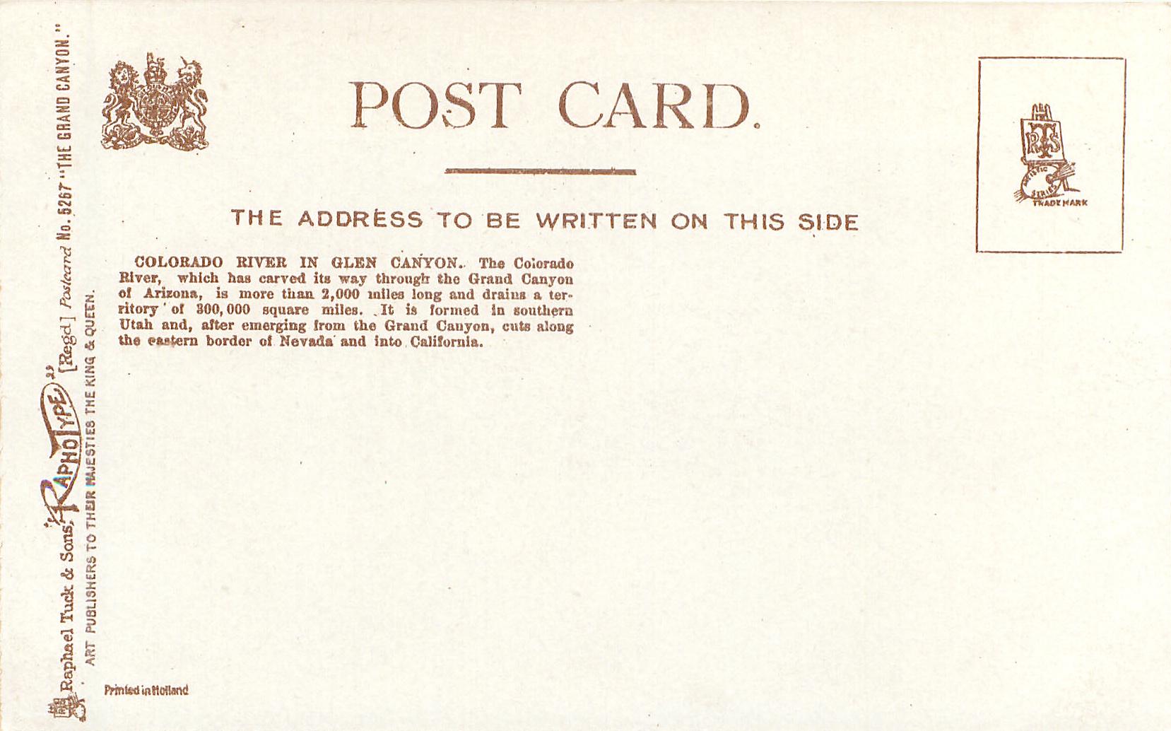 u/b, RAPHOTYPE, PRINTED IN HOLLAND (2 styles), same image, title & description COLLOTYPE (i.n. 6264-6275) & SILVERETTE (i.n. 7264-7275)