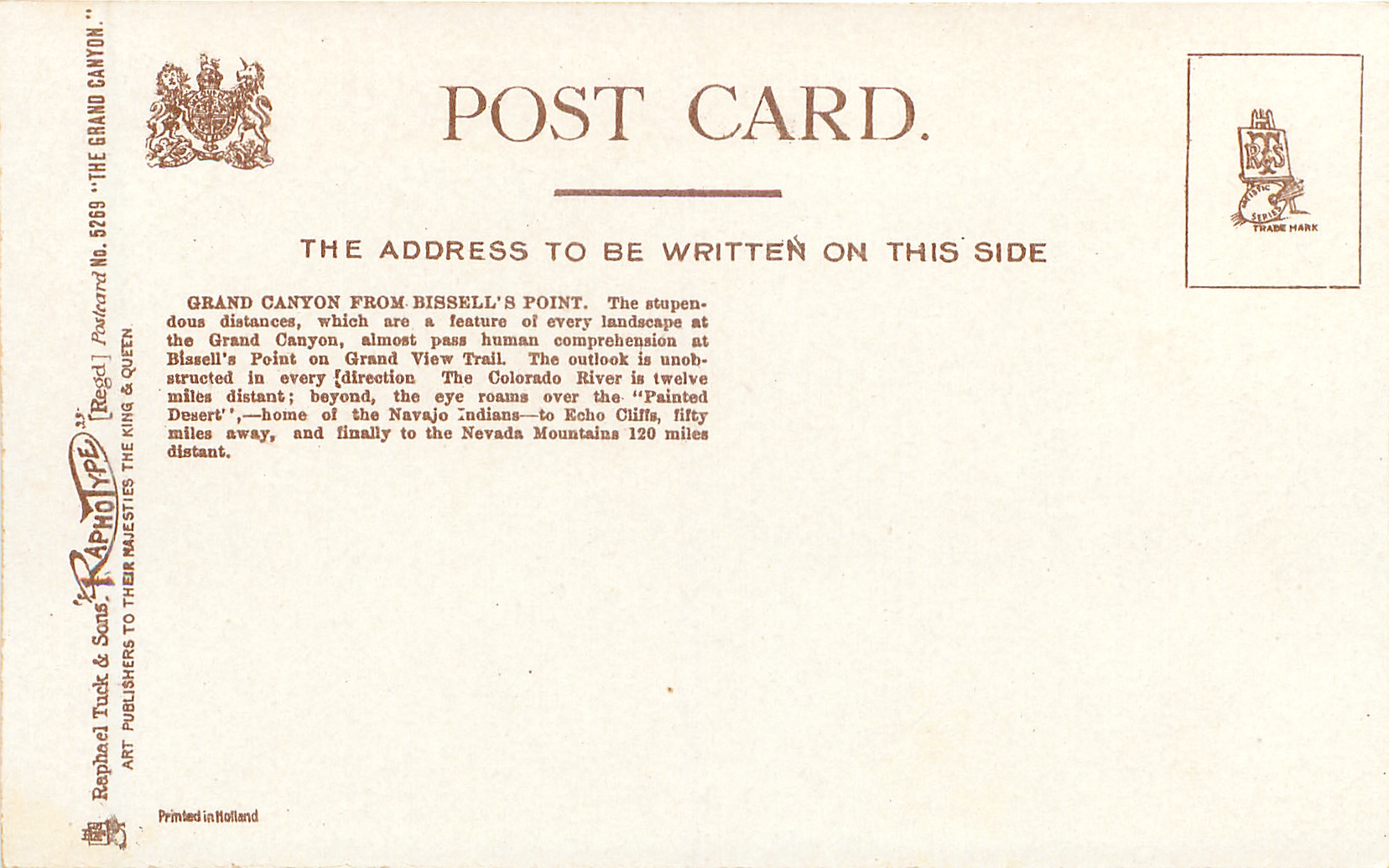 u/b, RAPHOTYPE, PRINTED IN HOLLAND (2 styles), same image, title & description COLLOTYPE (i.n. 6264-6275) & SILVERETTE (i.n. 7264-7275)