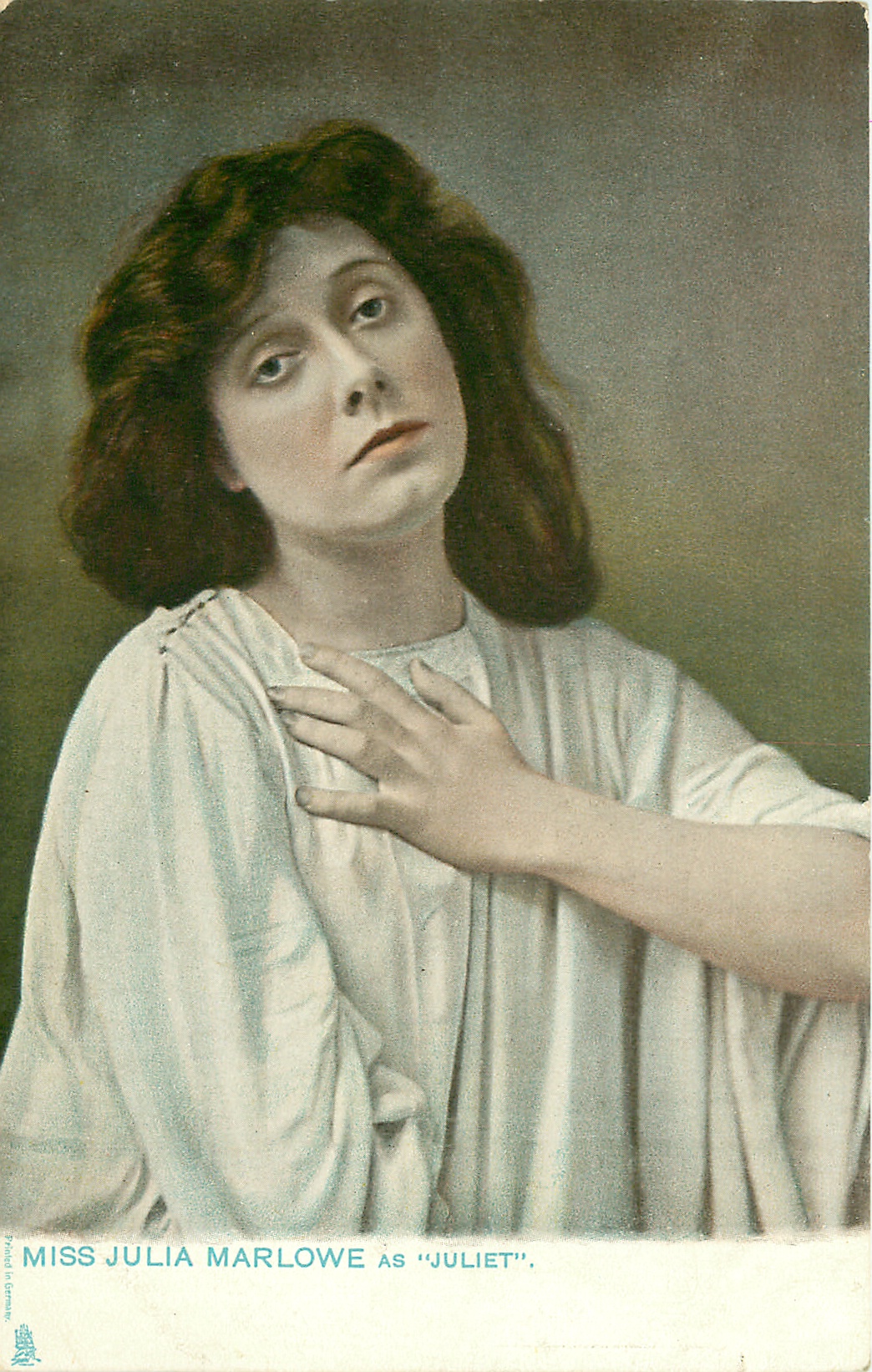 Julia Marlow (1865 Eng.-1950 NY City) had her Broadway debut in 1895 & did over 70 Broadway Shows. Romeo & Juliet in 1904 Was born Sarah Frost in Eng. & nicknamed Fanny.