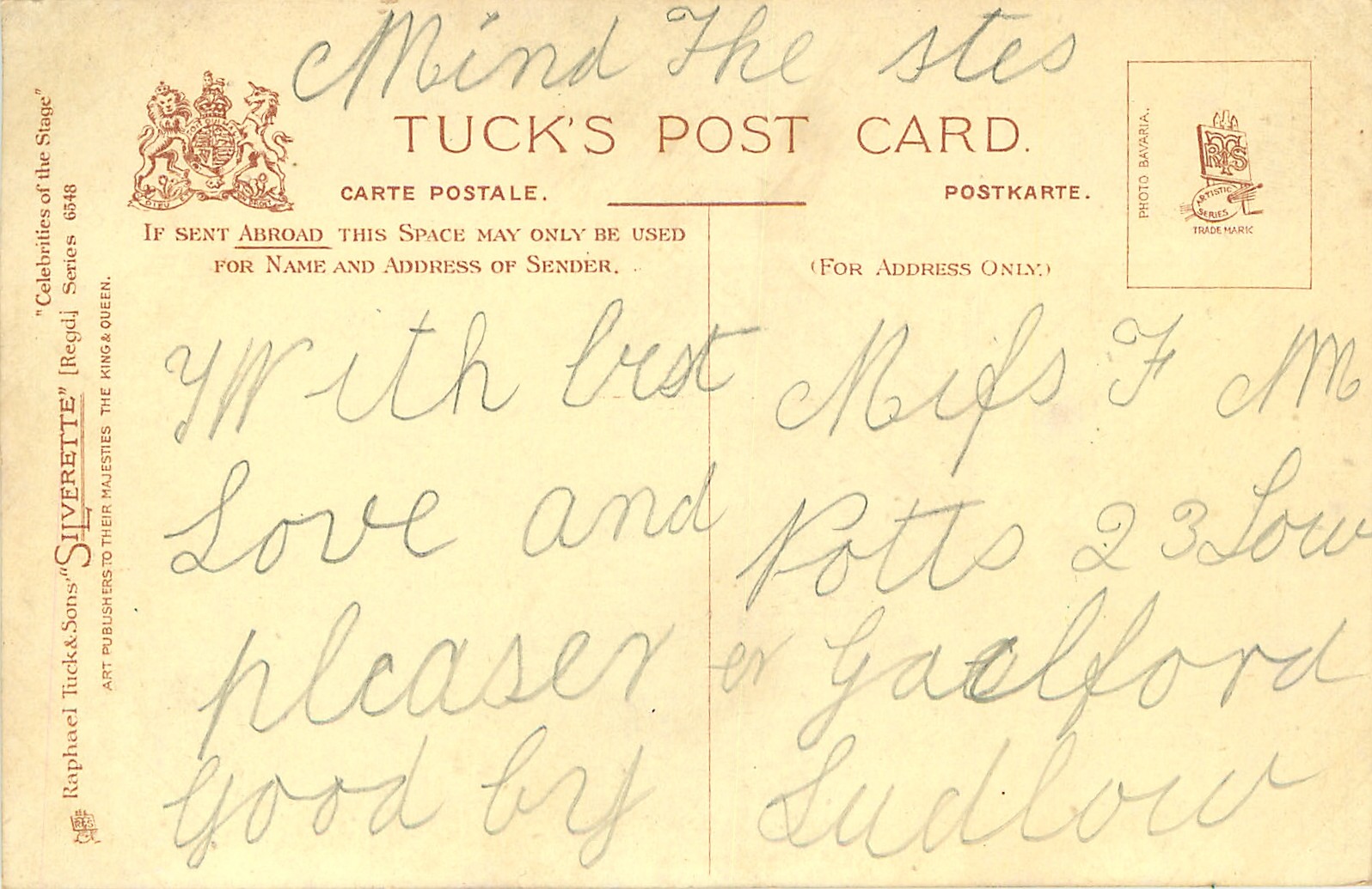 PHOTO JOHNSTON & HOFFMAN (1883-1973) in "A Celebrated Case" 1893; in "The Orchid" 1903 Gaiety Th. (559) & a Broadway run. was "So Hie"in "SEE SEE" at "Prince of Wales Th,1906; many others then in 1936 had a break down ,and in a mental hospital for nearly 40 yrs.