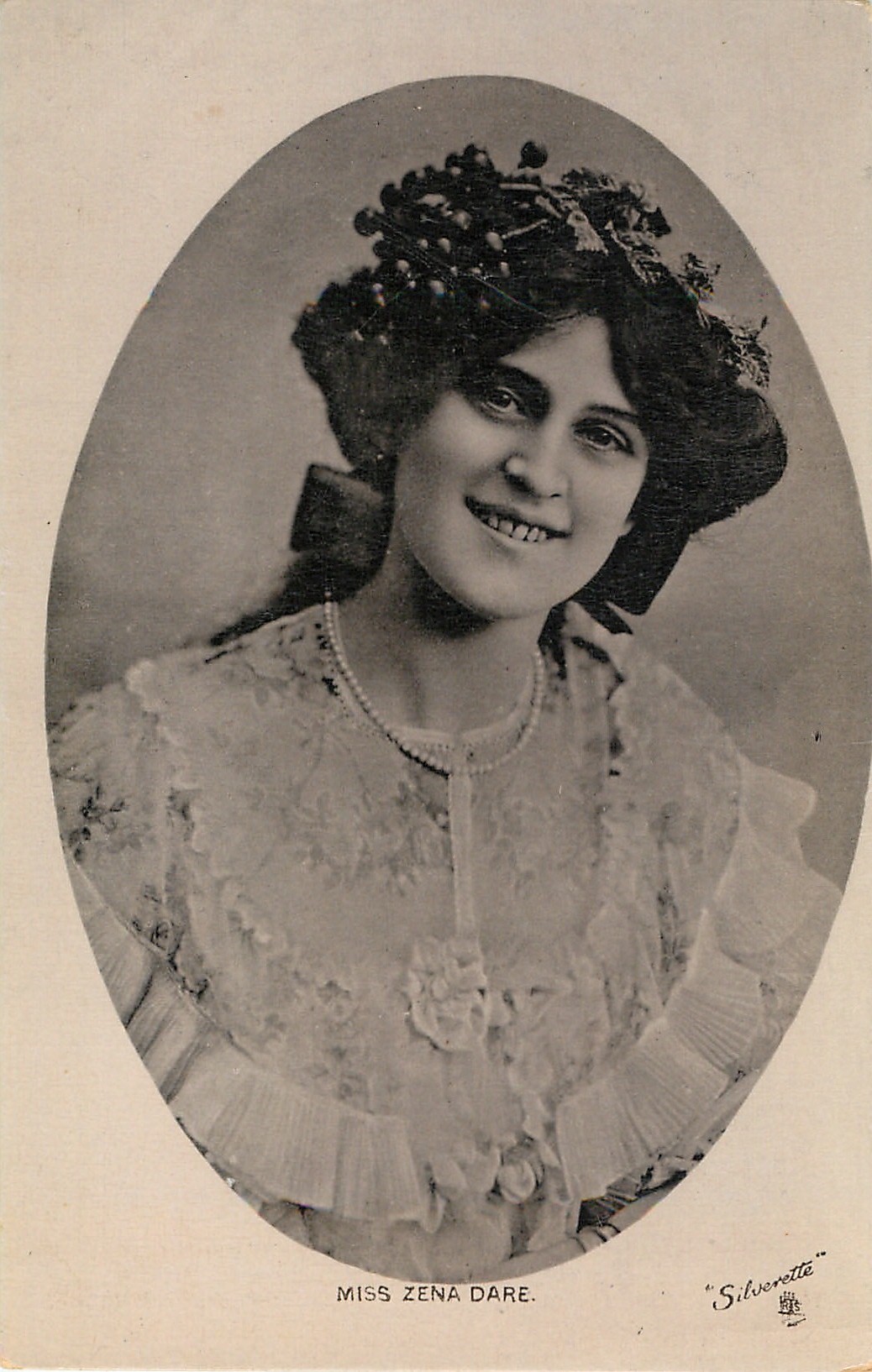 MISS ZENA DARE head & shoulders portrait in an oval with white surround