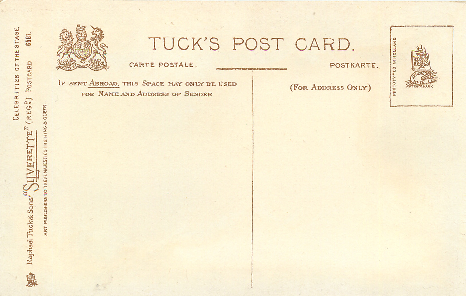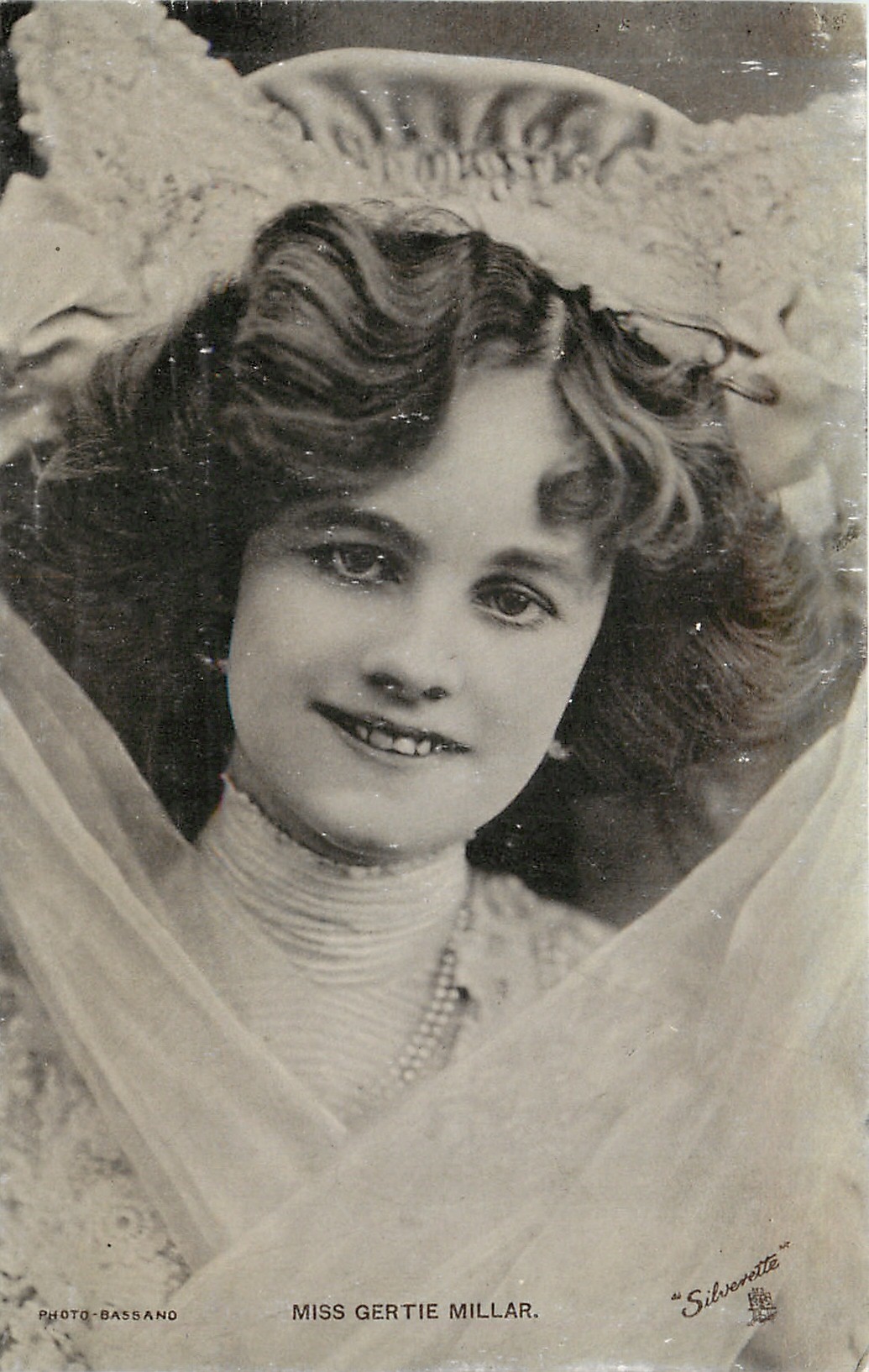 Gertie Millar (1879 Eng.-1952 Eng.) Final Play was in 1918 at Alhambra Th. in Bradford Eng. where she was born.