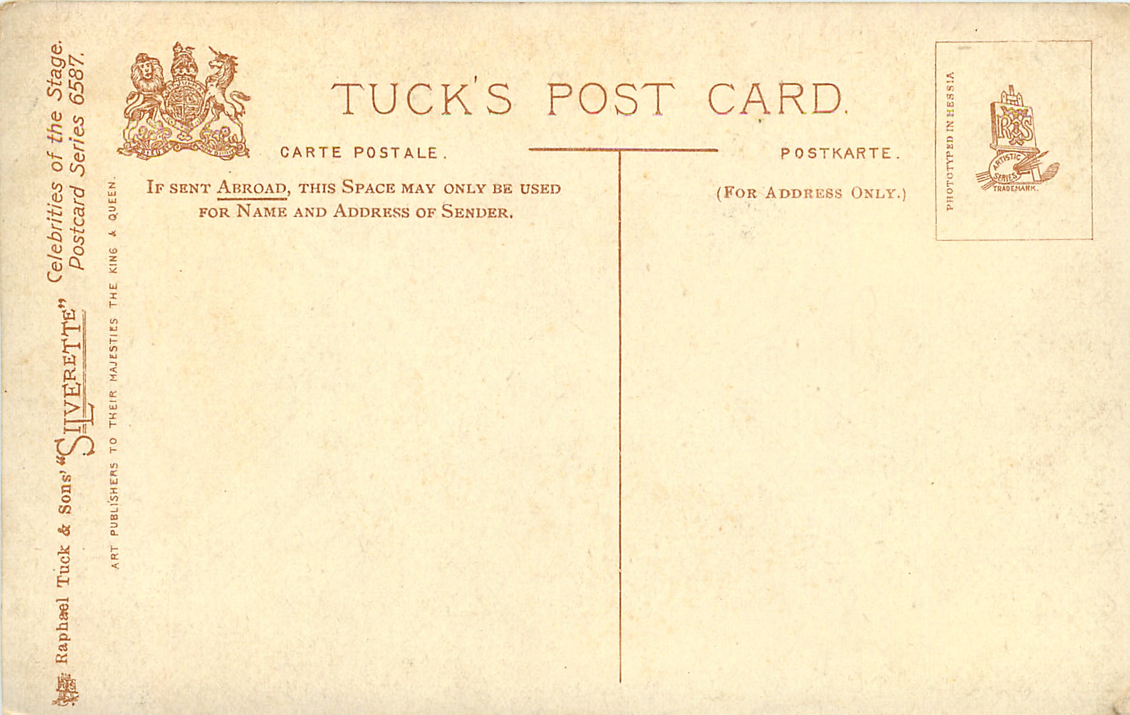 SILVERETTE, PHOTOTYPED IN HESSIA (in stamp box), shades of grey/black
