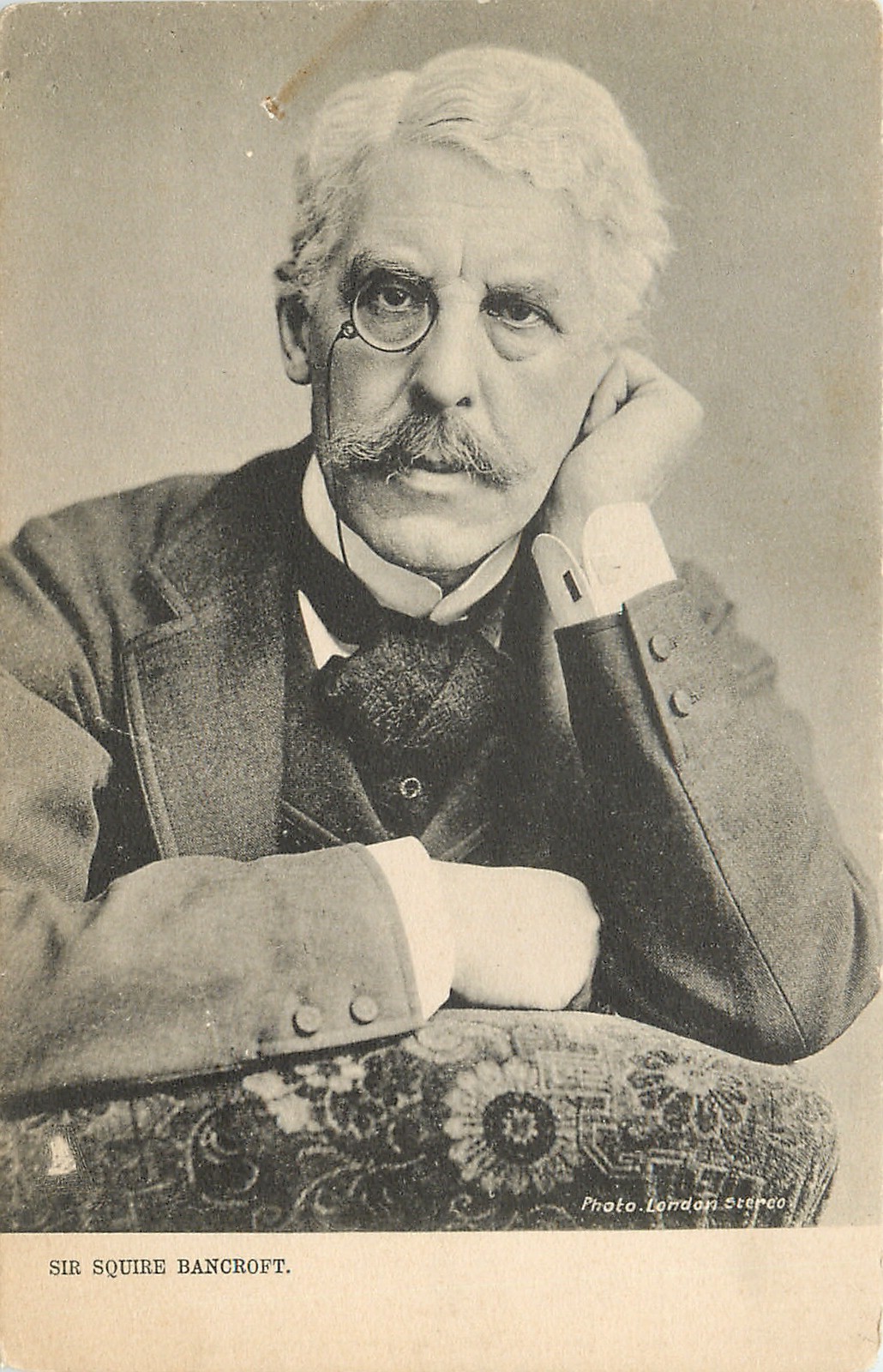 Sir Squire Bancroft (1841 London-1926 London) Actor, Manager was in Plays "Society" 1865, "Ours" 1866, "Caste "1867, "Play" 1868, "School" 1869, "The School for Scandal" 1874, "Diplomacy 1878