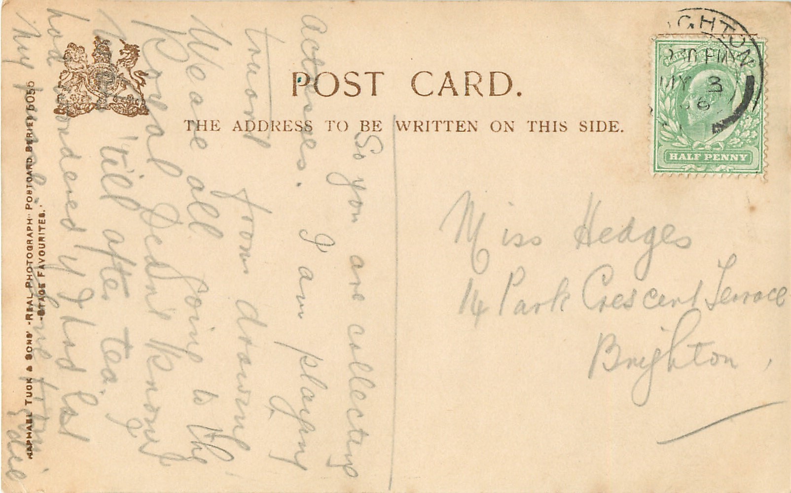 u/b or d/b, REAL PHOTOGRAPH, same image as 684, come hand-coloured, PHOTO LONDON STEREO, listed in 1904 POSTCARD Catalogue