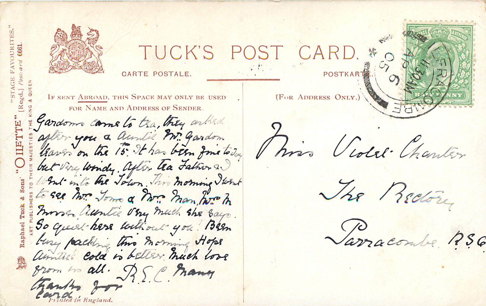 OILETTE, PRINTED IN ENGLAND, 2 backs, listed in 1911/1912 & 1913/1914 Postcard Catalogues