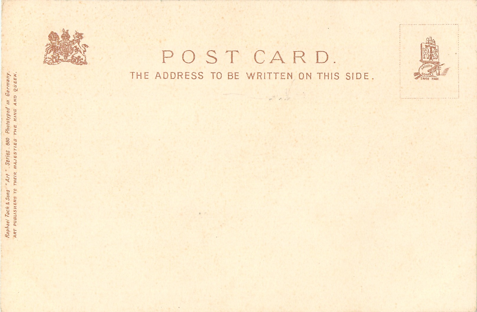 ART, u/b, 2 backs, numbers on front or back, packet 880, listed in 1904 POSTCARD Catalogue, CHROMOGRAPHED IN PRUSSIA or PRINTED IN GERMANY