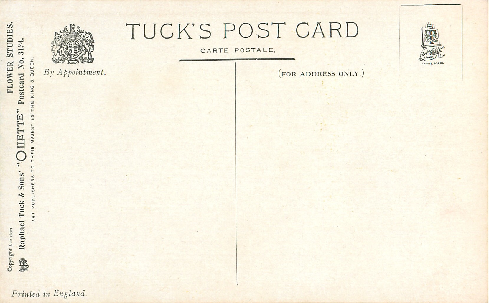OILETTE, PRINTED IN ENGLAND, COPYRIGHT LONDON or PRINTED IN THE UNITED KINGDOM, 4 backs, come O/F but not so trade named, listed in 1926/1927 & 1930 POSTCARD Catalogues