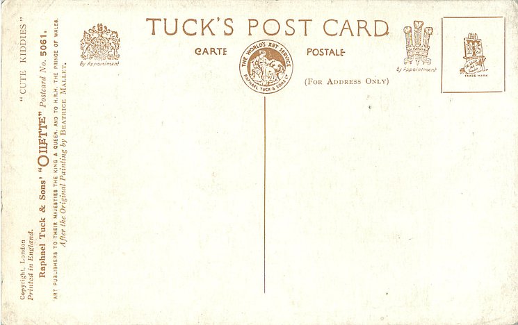 OILETTE, COPYRIGHT LONDON, PRINTED IN ENGLAND, AFTER THE ORIGINAL PAINTING BY BEATRICE MALLET