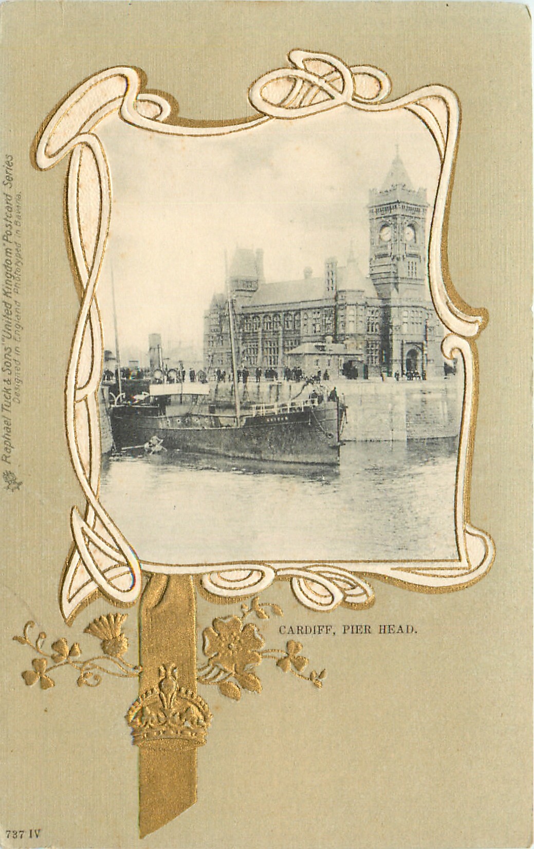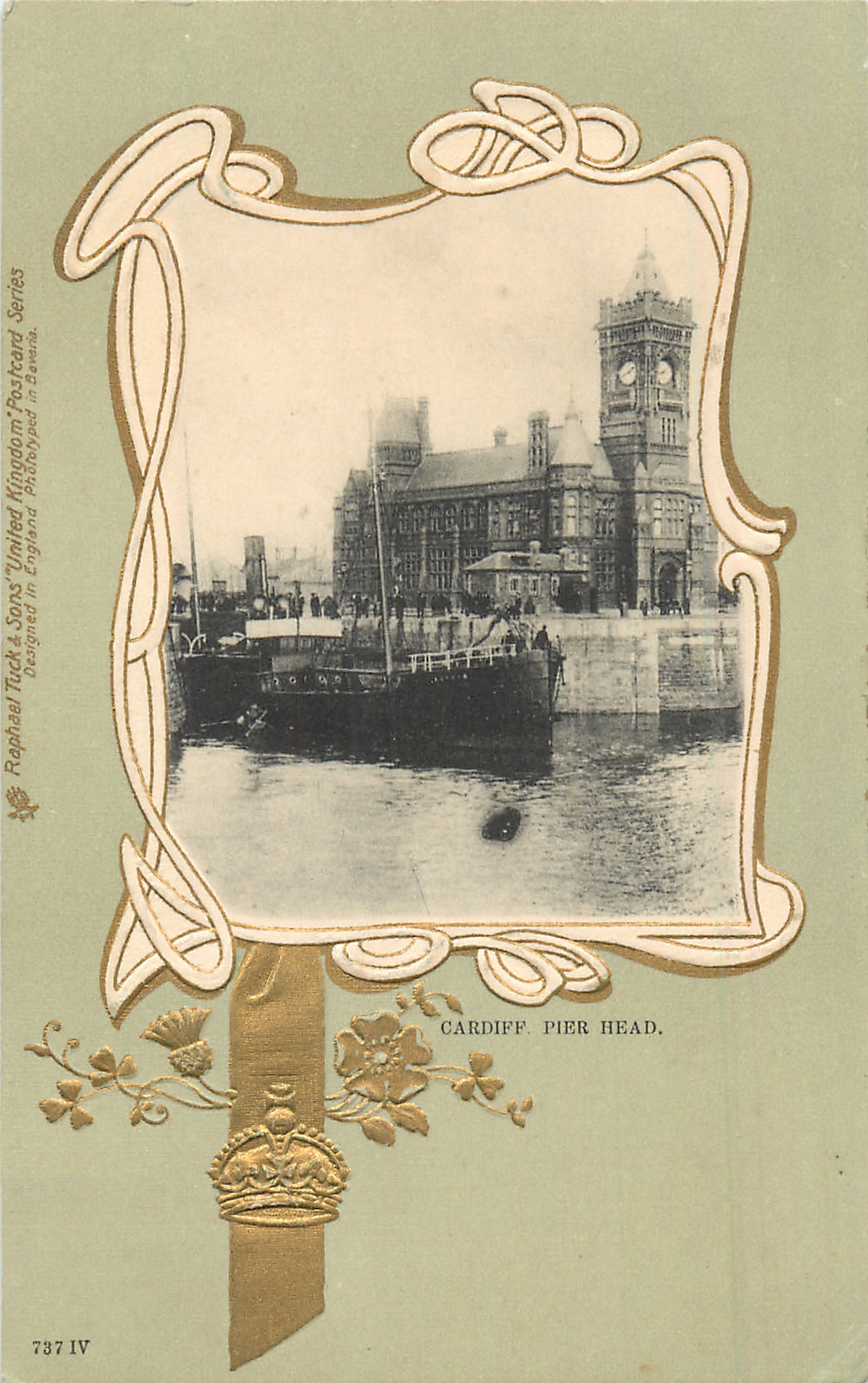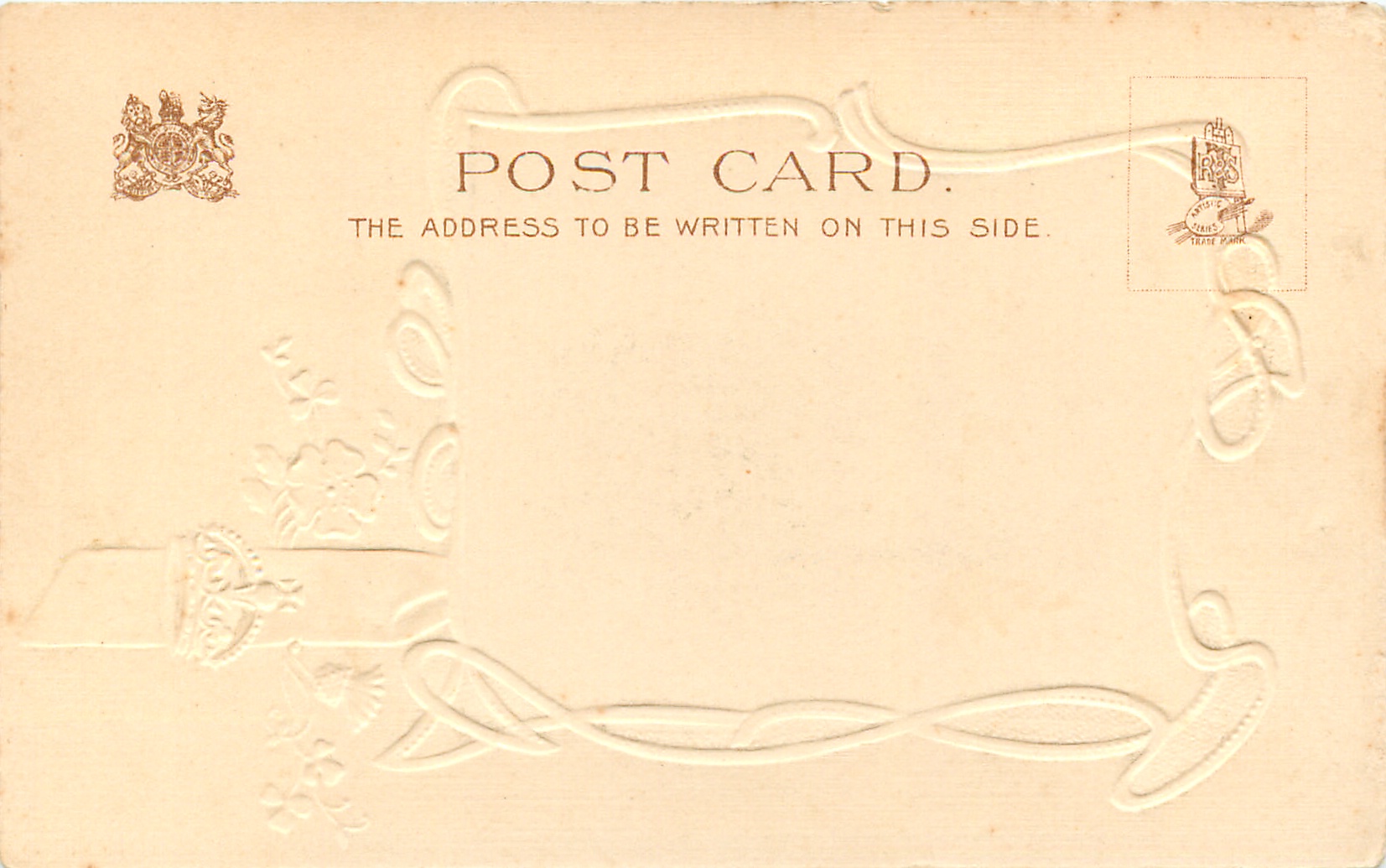 u/b, gilt embossed, shades of green background, DESIGNED IN ENGLAND, PHOTOTYPED IN BAVARIA