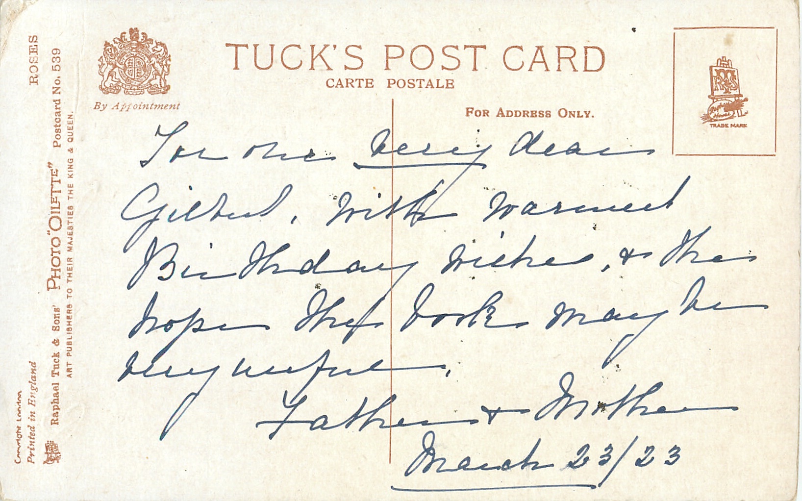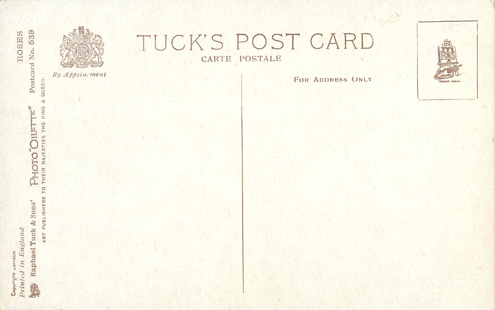 PHOTO OILETTE, PRINTED IN ENGLAND, COPYRIGHT LONDON, come oilfacsim but not so trade named, listed in 1930 POSTCARD Catalogue