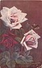 two pale pink roses and one red rose lower left