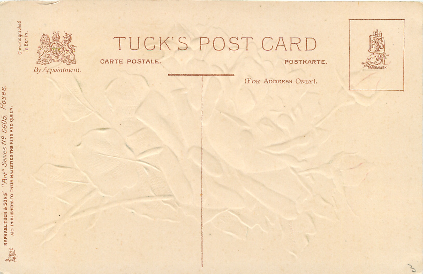 embossed, ART, CHROMOGRAPHED IN BERLIN, listed in 1911/1912 Postcard Catalogue