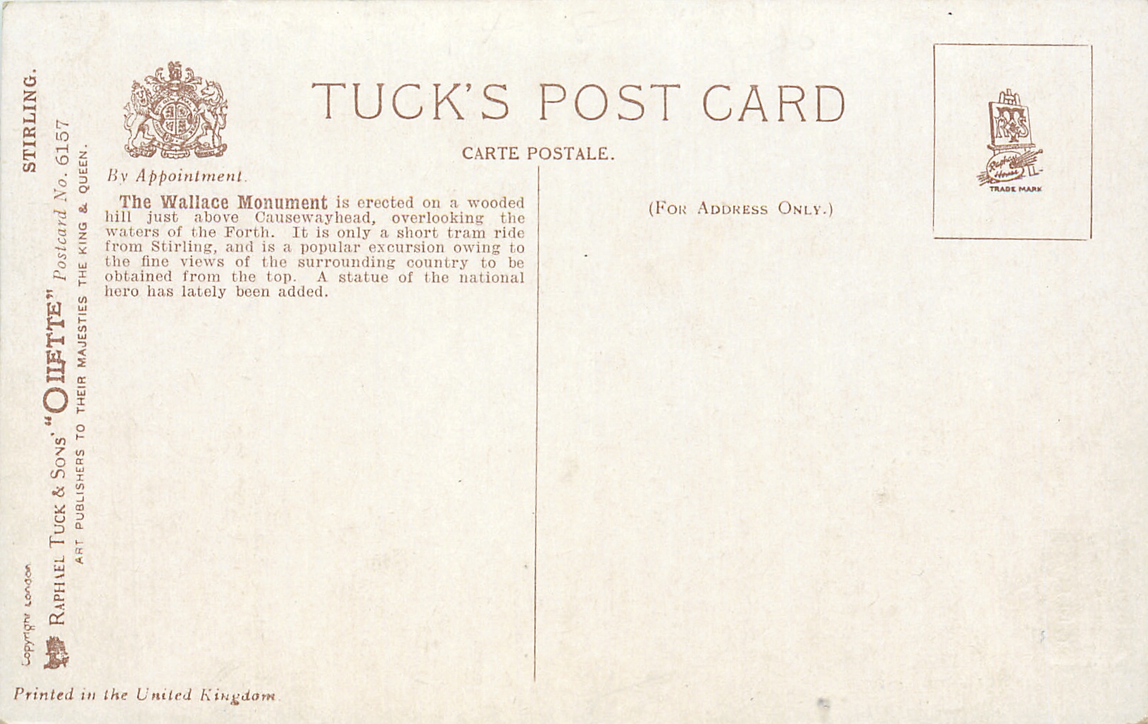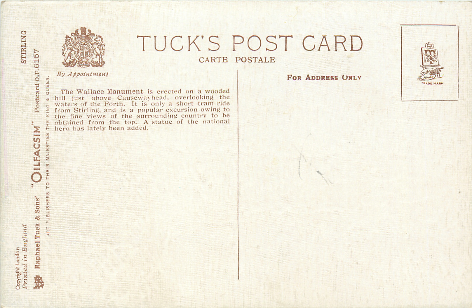 OILETTE, come with or without COPYRIGHT LONDON, come PRINTED IN ENGLAND or PRINTED IN THE UNITED KINGDOM, come OILFACSIM and Oilfacsim but not so trade-named, come opt. red & blue AMERICAN Y.M.C.A. logo, various printings up to 9 backs, listed in 1904/1905 & 1908/1909 & 1911/1912 &1930 POSTCARD Catalogues
