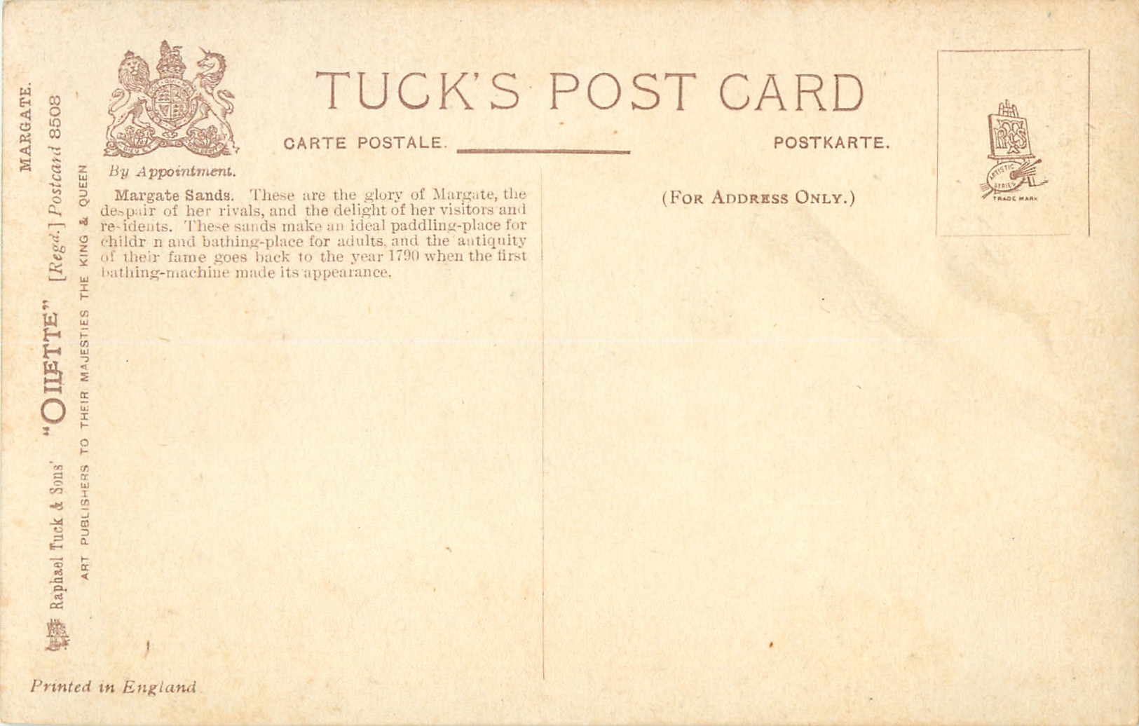 glossy, OILETTE, PRINTED IN ENGLAND, listed in 1908/1909 & 1911/1912 &1930 POSTCARD Catalogues