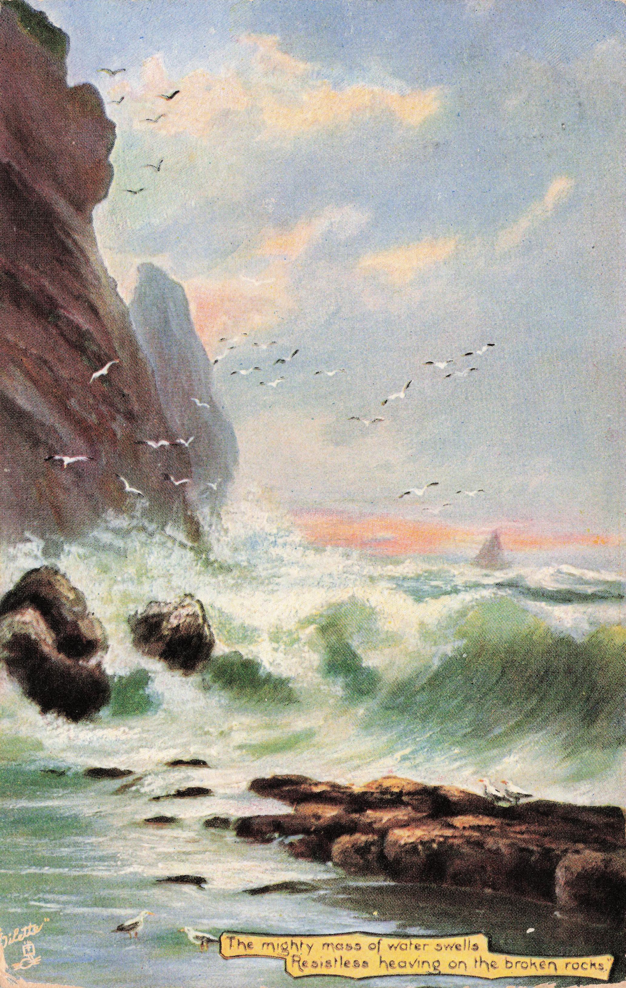 "THE MIGHTY MASS OF WATER SWELLS, RESISTLESS HEAVING ON THE BROKEN ROCKS"