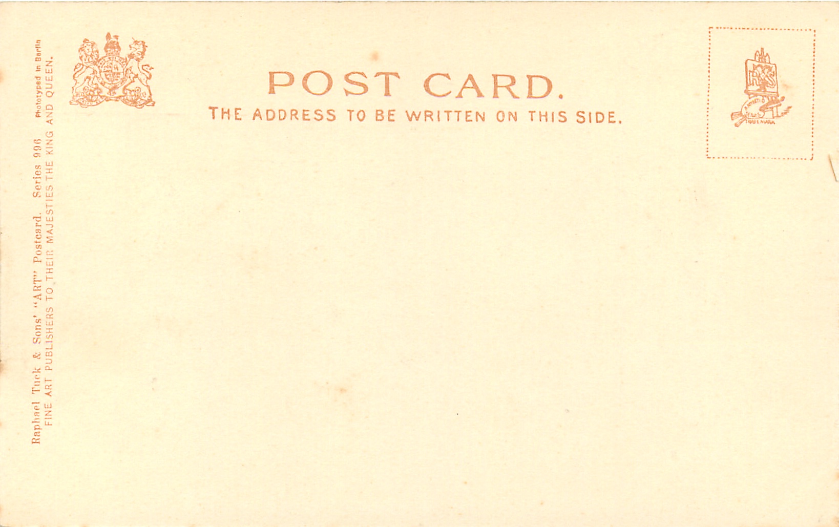ART, come u/b or d/b, come sepia, blue/black, grey, 4 backs, PHOTOTYPED IN BERLIN, same images in 5075, listed in 1904 POSTCARD Catalogue