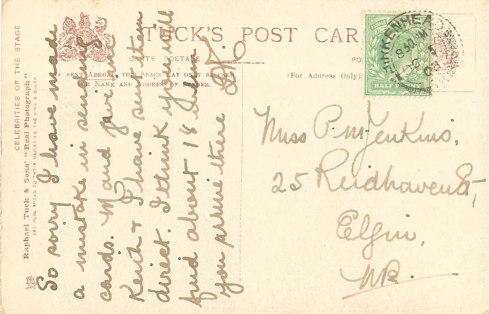 Maudi Darrell (1882 London- 1910) A Gaiety Girl and in Vaudeville. Married John Bullough a rich mill owner 1909 & died 1910 of Appendicitis Complications.