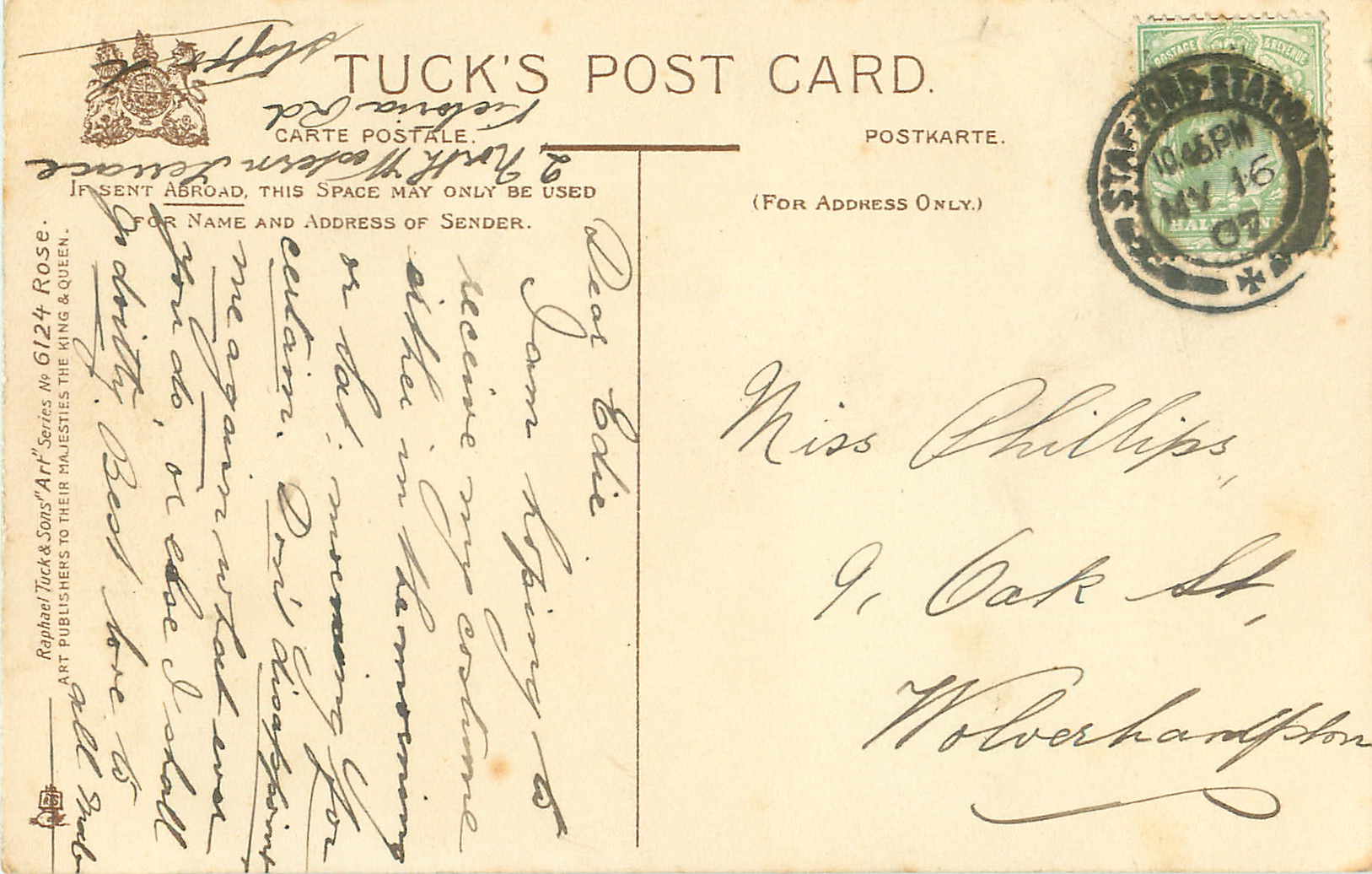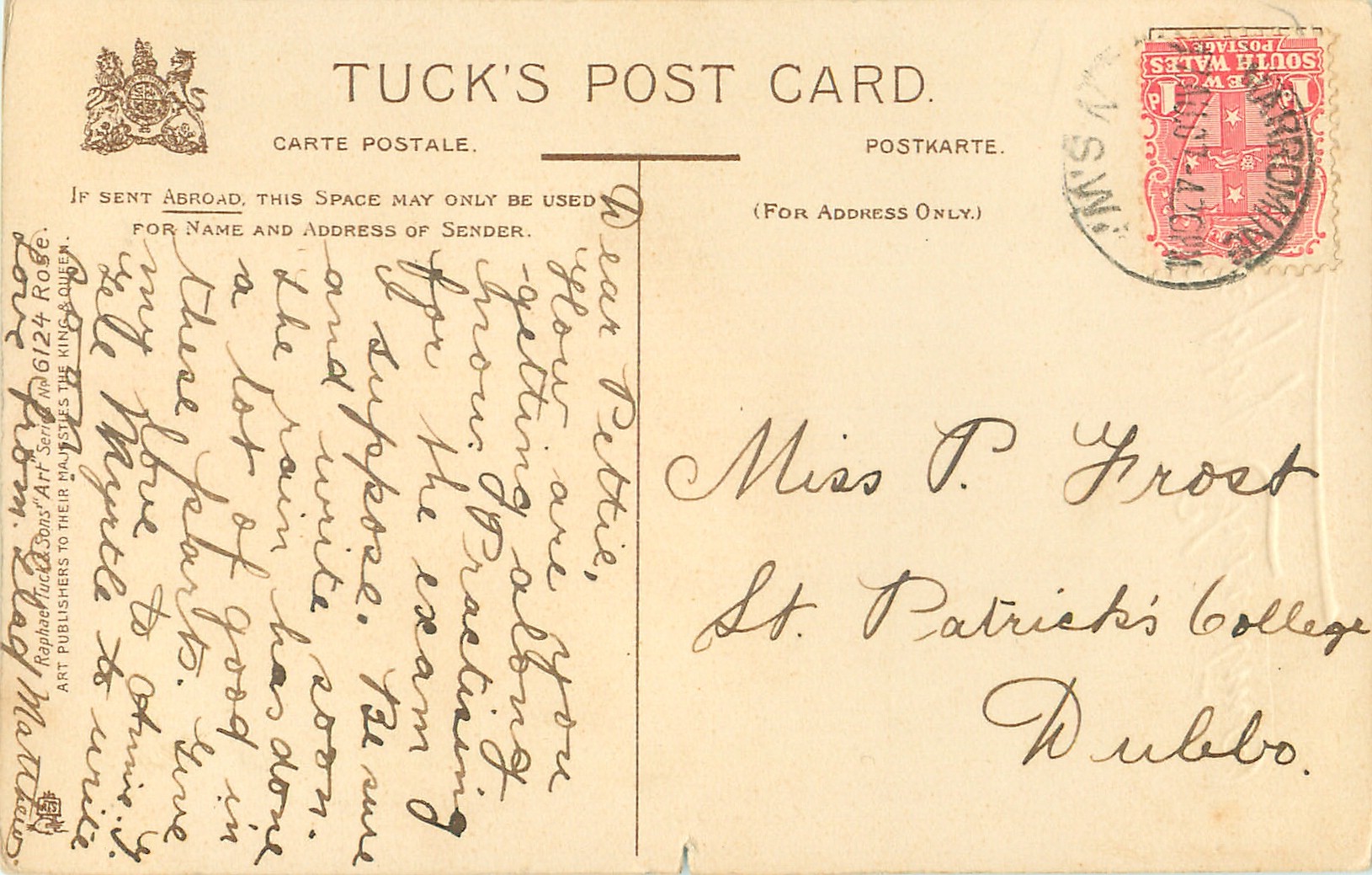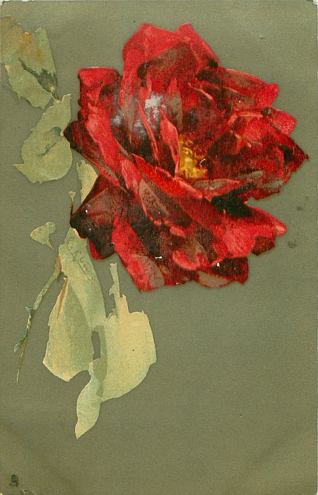 ART, CHROMOGRAPHED IN SAXONY (in or out of stamp box), deep green background, listed in 1911/1912 Postcard Catalogue