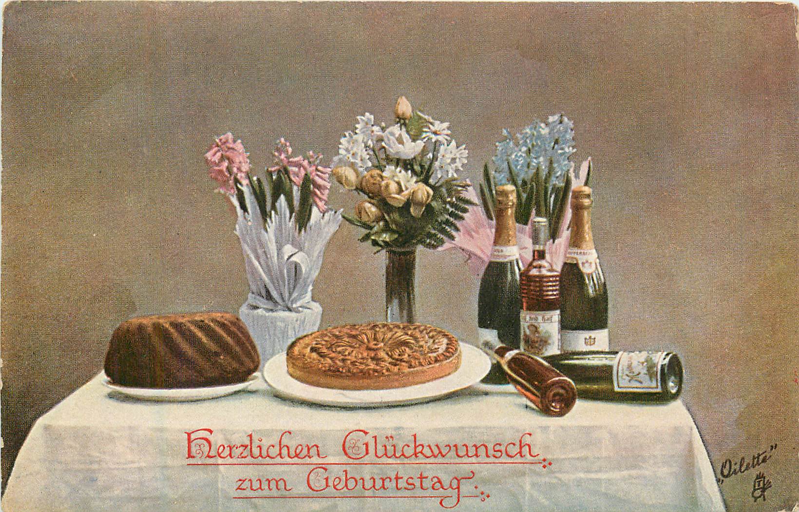 comes opt. in white HERZLICHEN GLUCKWUNSCH ZUM GEBURASTAGE or HERZLICHEN GLUCKWUNSCH ZUM GEBURASTAGE or in red w/o suffix HERZLICHEN GLUCK WUNSCH ZUM GEBURTSTAG