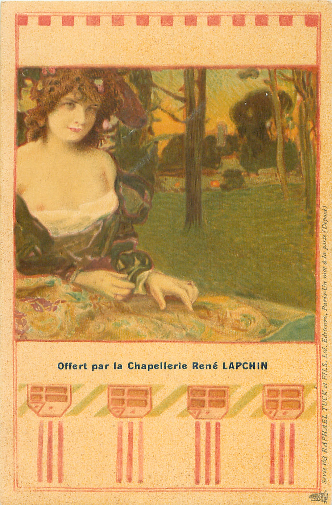 u/b, PARIS - UN MOT A LA POSTE (DEPOSE), attribution to Kempf very uncertain, this set does not have in set card numbers, come opt. in blue OFFERT PAR LA CHAPELLERIE RENE LAPCHIN, same images as French backed cards SERIE 166 which have in-set card numbers