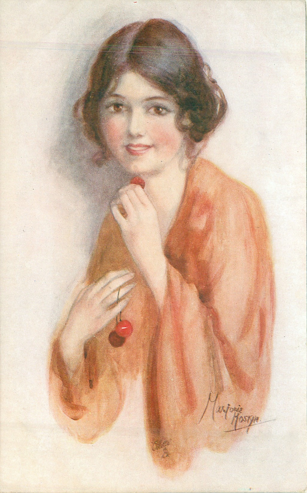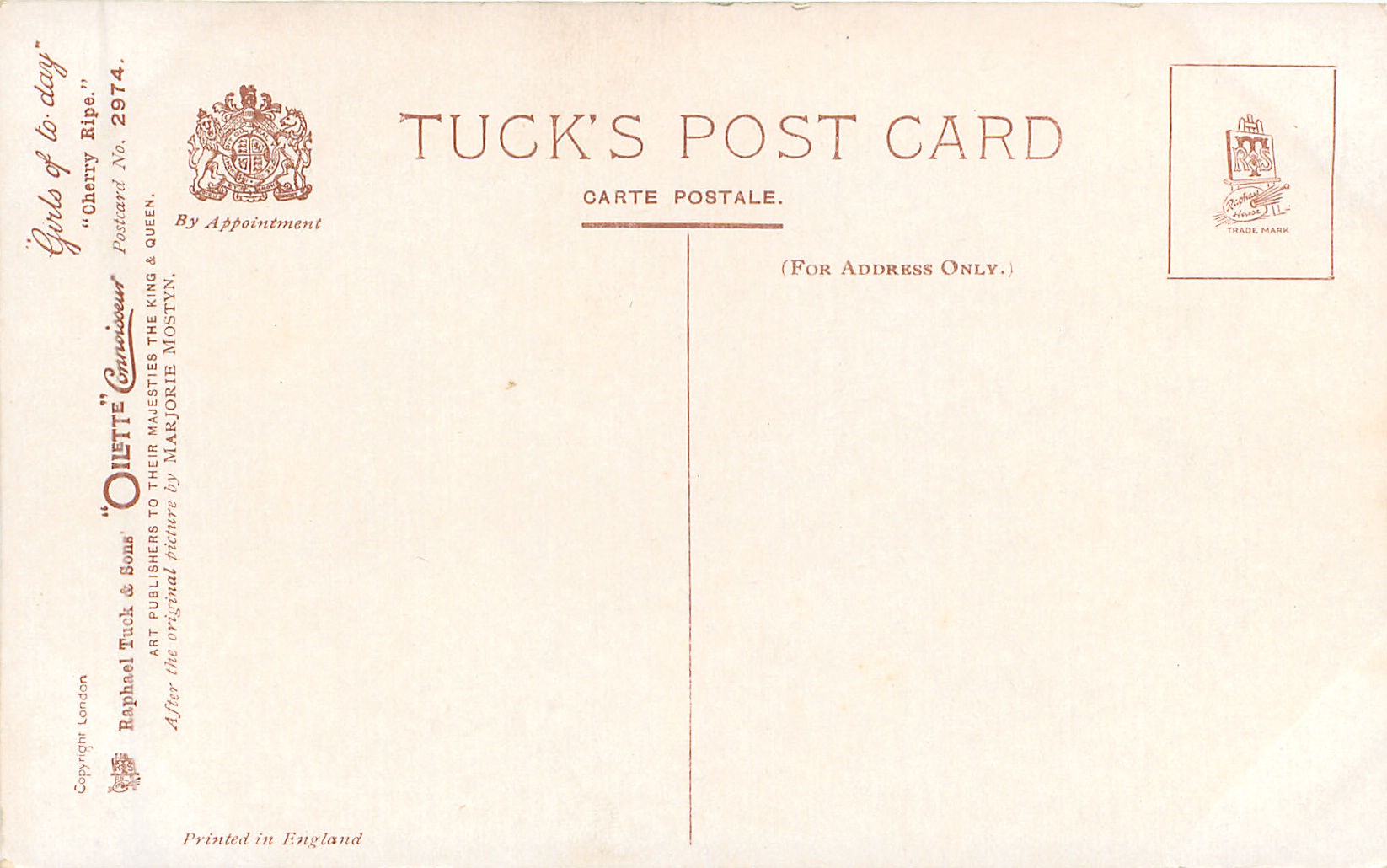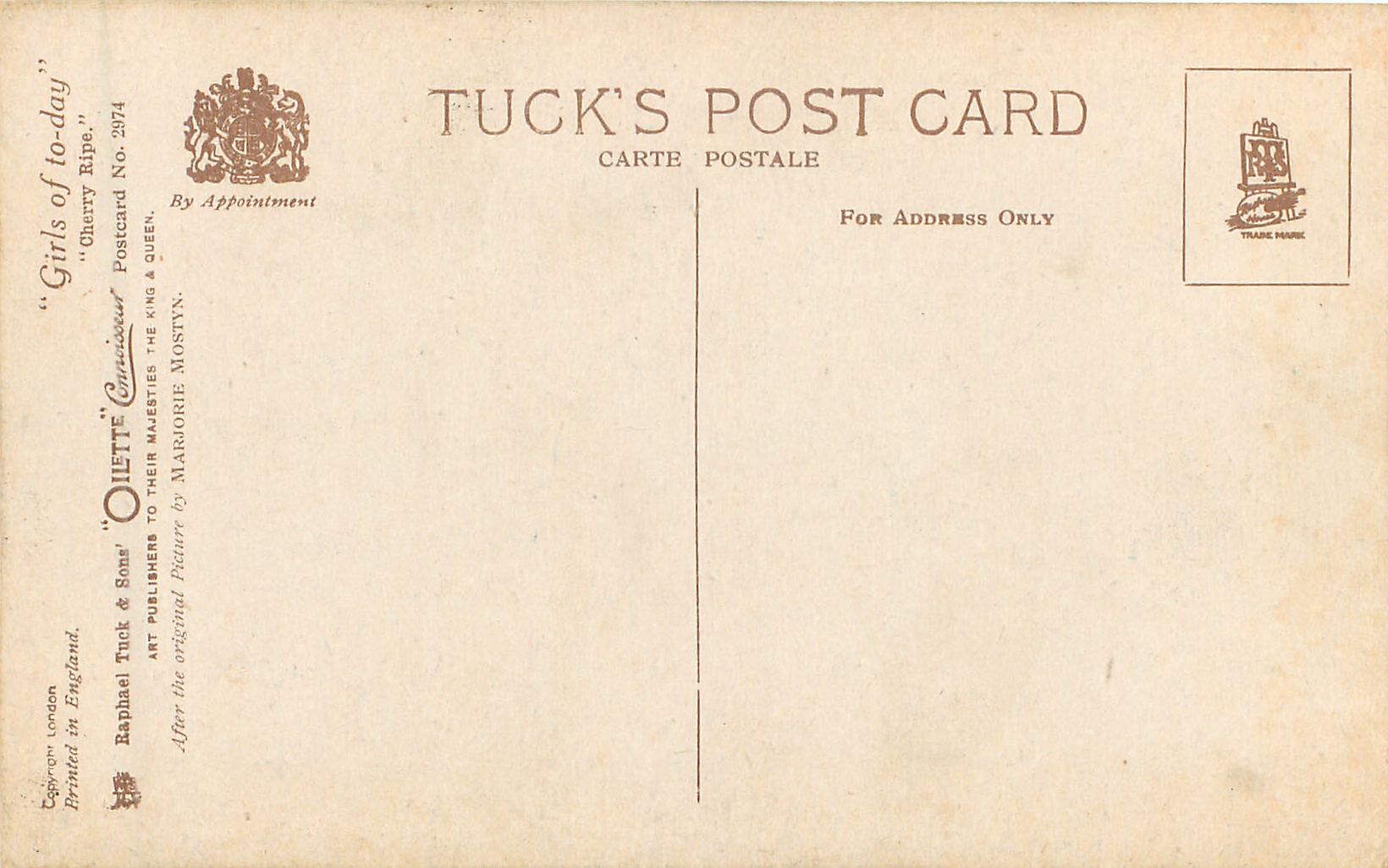 OILETTE CONNOISSEUR, PRINTED IN ENGLAND with or w/o COPYRIGHT LONDON AFTER THE ORIGINAL PICTURE BY MARJORIE MOSTYN