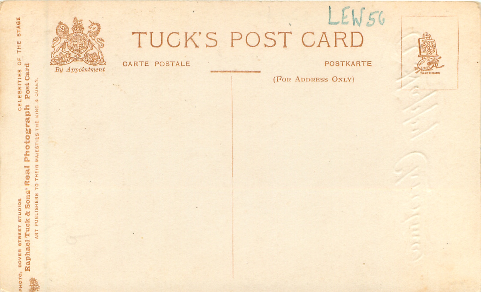 PHOTO DOVER STREET STUDIOS Madge Lessing (1866 London -1932 London) was "Mother Goose" Adelphi Th. London 1903. Embossed o/p in gilt A HAPPY CHRISTMAS.