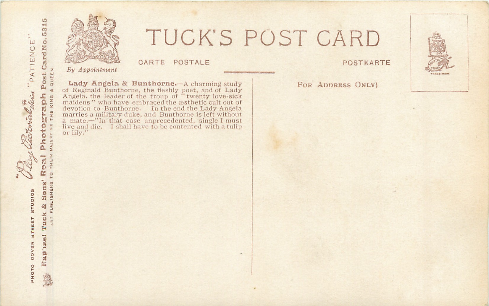 THE LADY ANGELA (MISS JESSIE ROSE) REGINALD BUNTHORNE, A FLESHLY POET (MR. C. H. WORKMAN)., PHOTO DOVER STREET STUDIOS Jessie Rose 1875-1928 Opera singer & actress in Gilbert & Sullivan's Operas