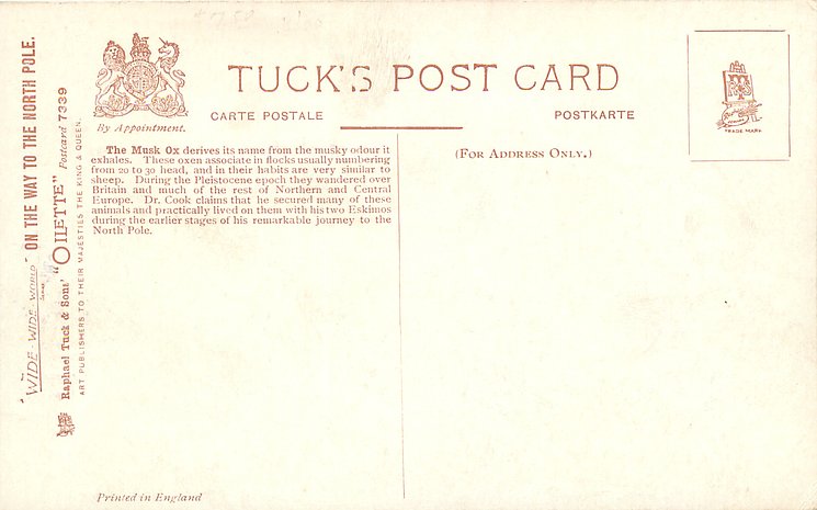 OILETTE, WIDE-WIDE-WORLD, PRINTED IN ENGLAND, THE ARCTIC REGIONS and/or ON THE WAY TO THE NORTH POLE on fronts and/or backs