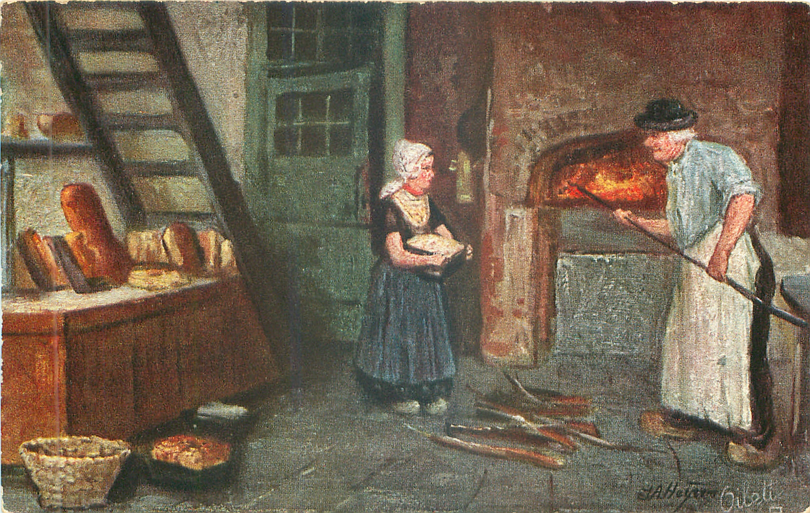title of English backed card AT THE BAKER'S