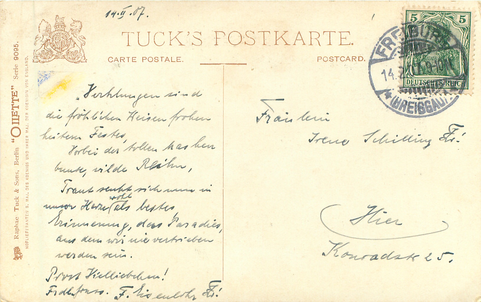 OILETTE, listed in 1911/1912 Postcard Catalogue, card titles in English, same images English backs THE BREEZY SEA SERIES I