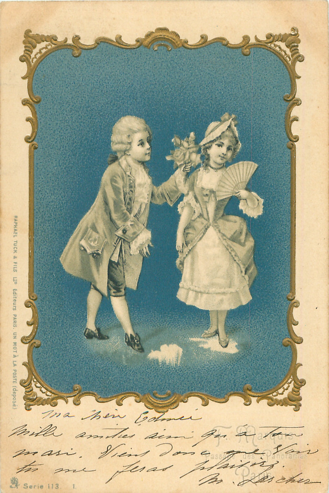 u/b, UN MOT A LA POSTE, (DEPOSE), gilt embossed frames, come with advert. in black on back PRODUITS FELIX POTIN G. GUILLEREZ MIRECOURT, or NOUVELLES GALLERIES MATHIAUX FRERES 8 & 10 RUE D'ALLIER MOULINS (ALLIER) or on front F. MARQUIS, PASSAGE DES PANORAMAS, PARIS