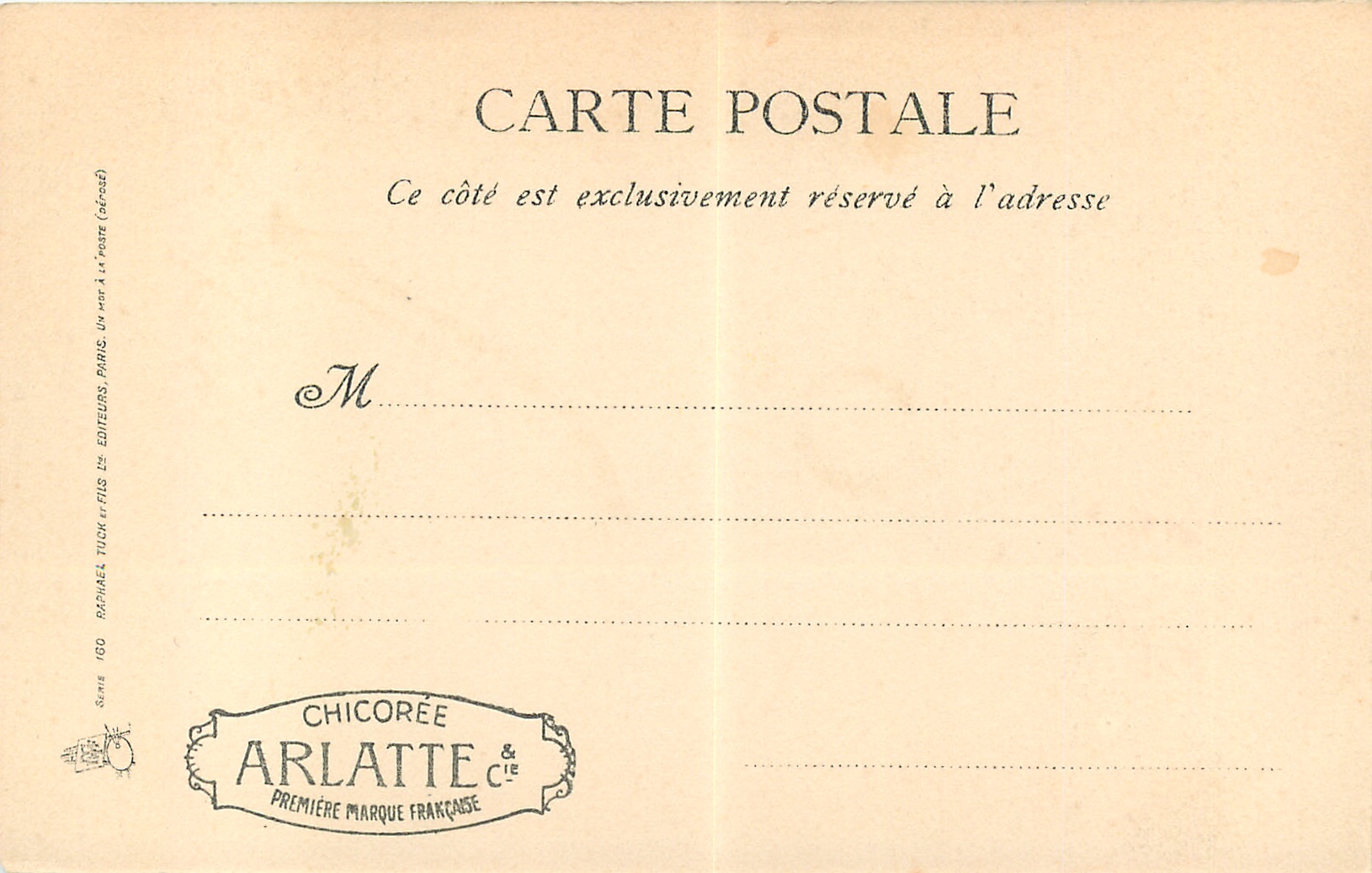 u/b, grey, UN MOT A LA POSTE, (DEPOSE), come hand-coloured, come opt. in black on back CHICOREE ARLATTE & CIE PREMIER MARQUE FRANCAIS, same images English backs CONTINENTAL 4027
