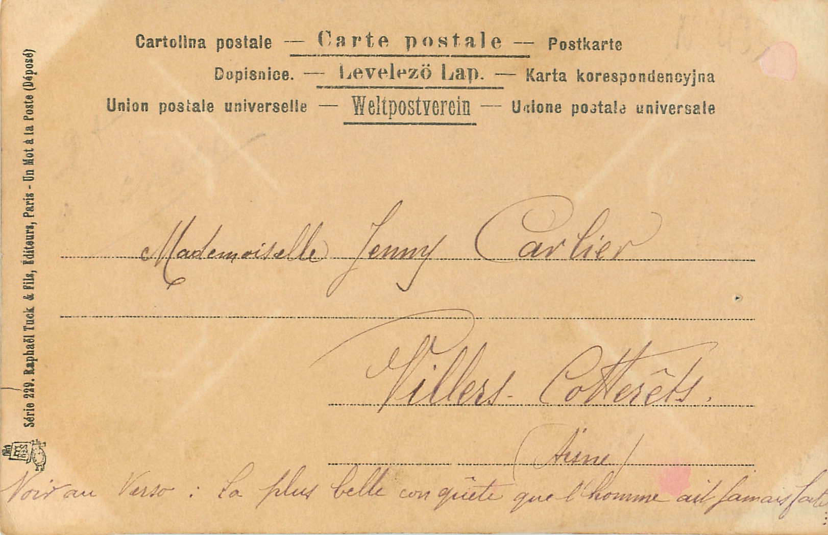 u/b, photographic hand-coloured, International back, 550 on front, UN MOT A LA POSTE, (DEPOSE)