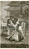 ENGLAND AND JAPAN man in naval uniform and Japanese woman kissing, man sits on bench, woman on knees